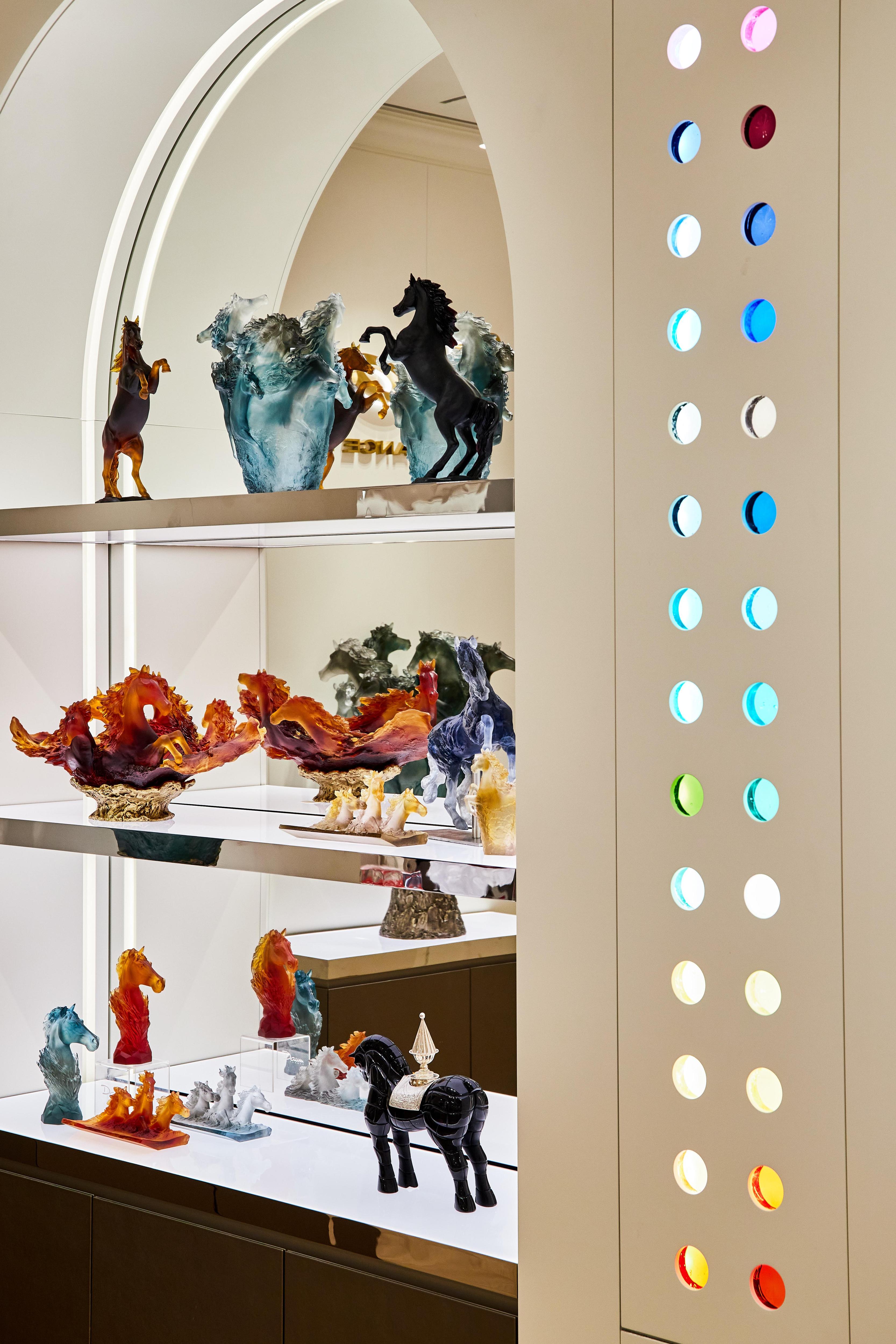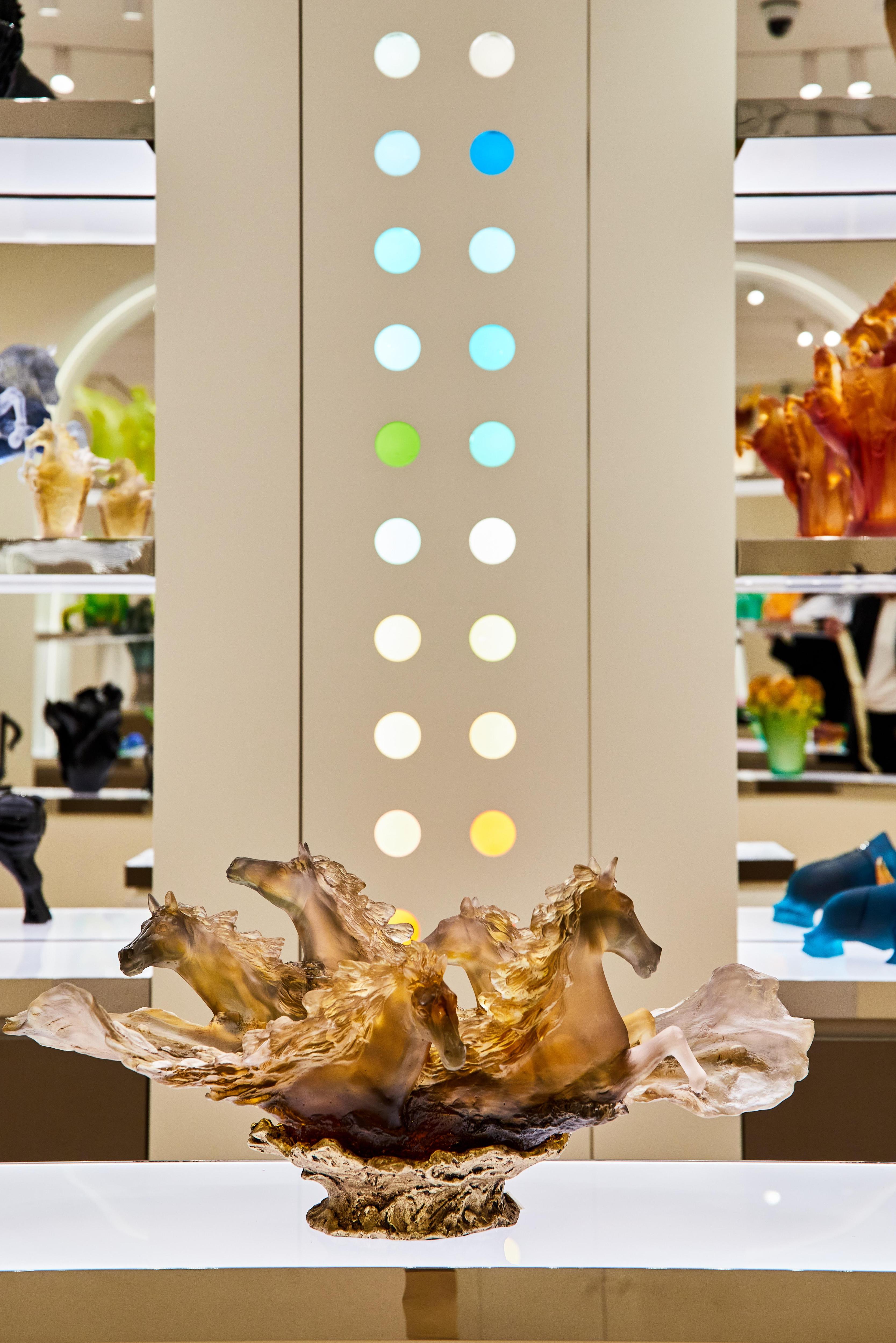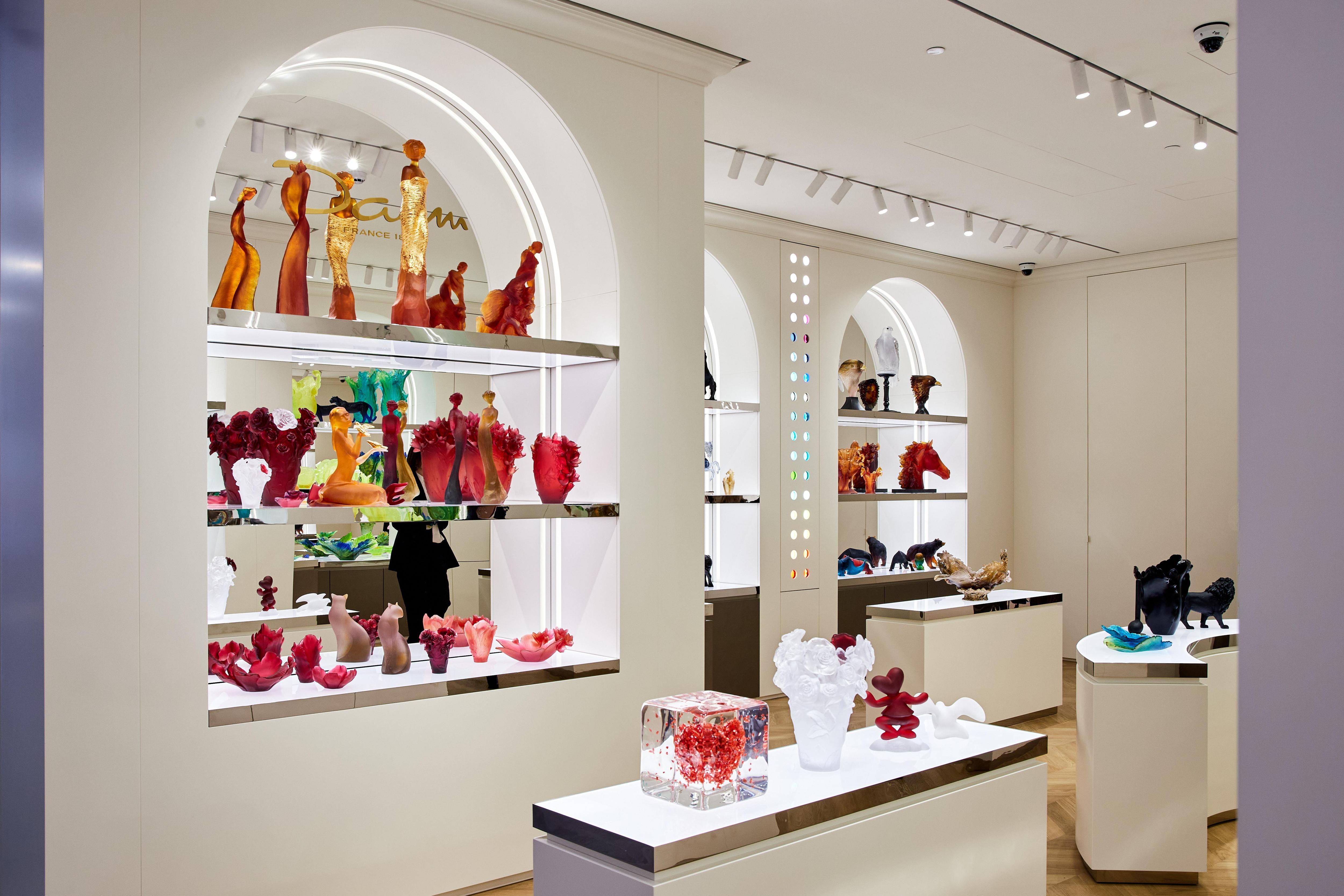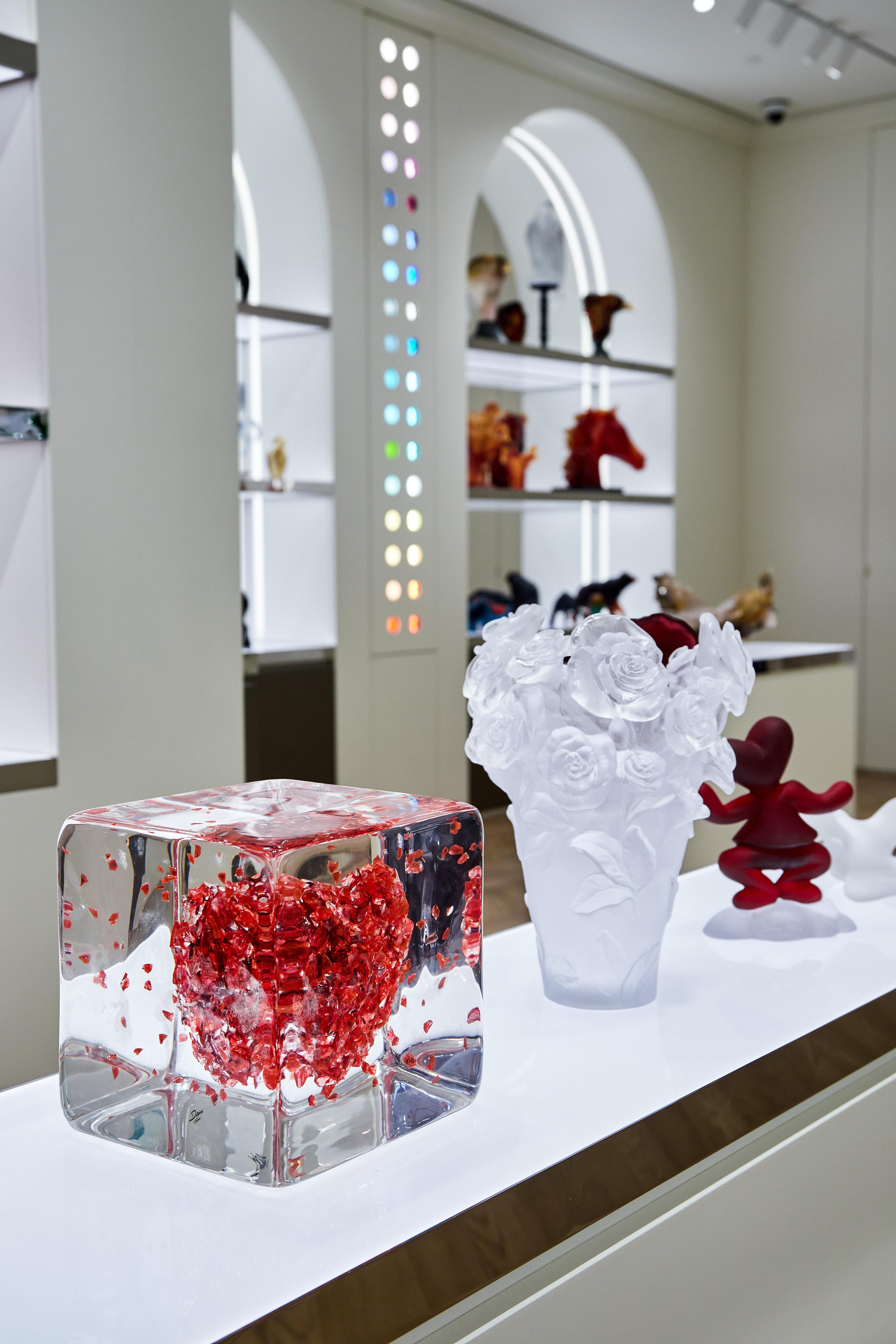 В новом корнере в ЦУМе собраны знаковые коллекции и работы известных мастеров: серии цветного стекла и хрусталя c цветочными и анималистическими мотивами Cavalcade, Tulipe, Amelie, Rêve Équestre, Safran, Сoral Sea, Douce Muse, Fleur De Paon Exotique, Camelia, Jardin De Cactus. Есть там и коллаборации с такими мастерами, как Ален Шуане, Натали Сеген, Бенджамин Фабрис, Мари-Поль Девилль Шабролль.