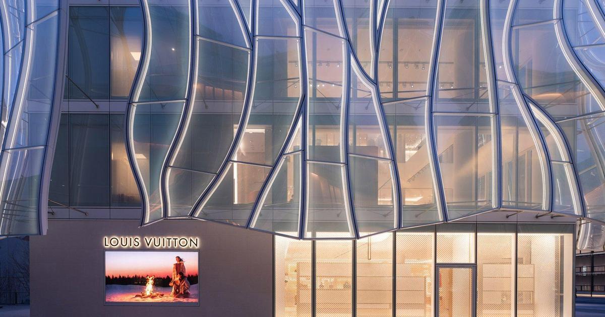 Четырехэтажный бутик Louis Vuitton расположен в престижном торговом районе Санлитун. Главная особенность — его внешние стены. Они облицованы особыми стеклянными панелями с дихроичным покрытием. Это покрытие работает как хамелеон: в зависимости от угла падения солнечного света и времени дня стекло отражает разные цвета — от синего и зеленого до золотого и розового.