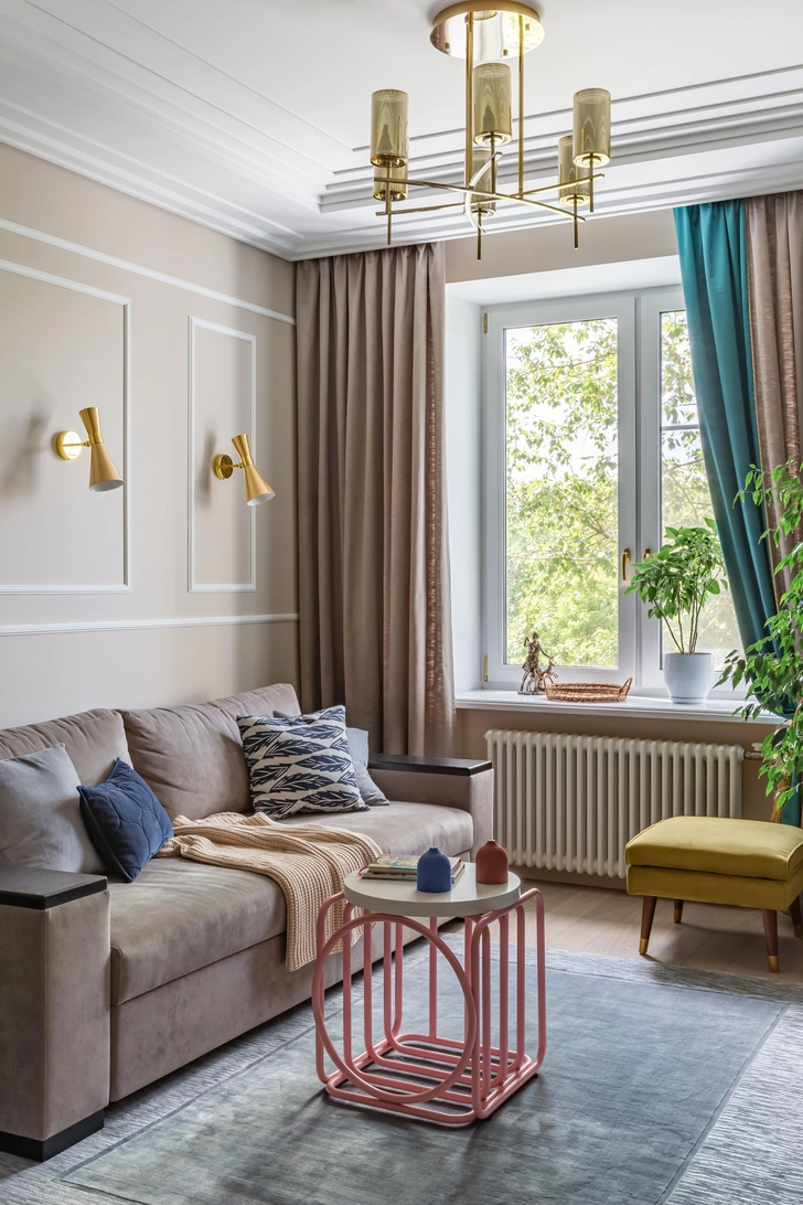 Интерьер этой квартиры создавался для пары врачей с сыном подростком, и, как это обычно бывает, предпочтения родителей и ребенка значительно отличались. «Супруги ведут спокойный образ жизни и предпочитают классические интерьеры в светлых тонах, а сыну ближе более динамичный ритм декора и зонирования. Кроме того, хозяин дома хорошо готовит и просил предусмотреть большую рабочую кухонную поверхность, много мест для хранения, желательно буфет или витрины», — рассказывает дизайнер Оксана Белозерова.