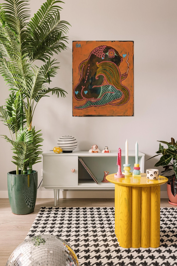 Картина Алены Котовской. Стул, Qeeboo. Светильник, Axolight. Свечи, Krsvk.