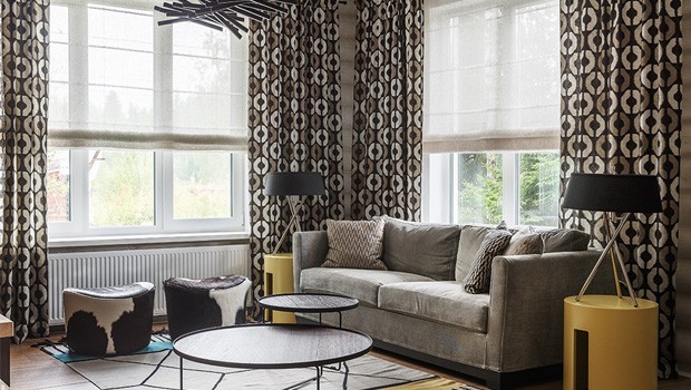«Ярким элементом интерьера стал текстиль с роскошными орнаментами.Что касается общей цветовой палитры, для холла, гостиной и кухни-столовой была выбрана почти черно-белая гамма с переходом в серые и оттенки слоновой кости. В качестве акцентных цветов я использовала насыщенный орех, немного разбеленный желтый и аквамарин».