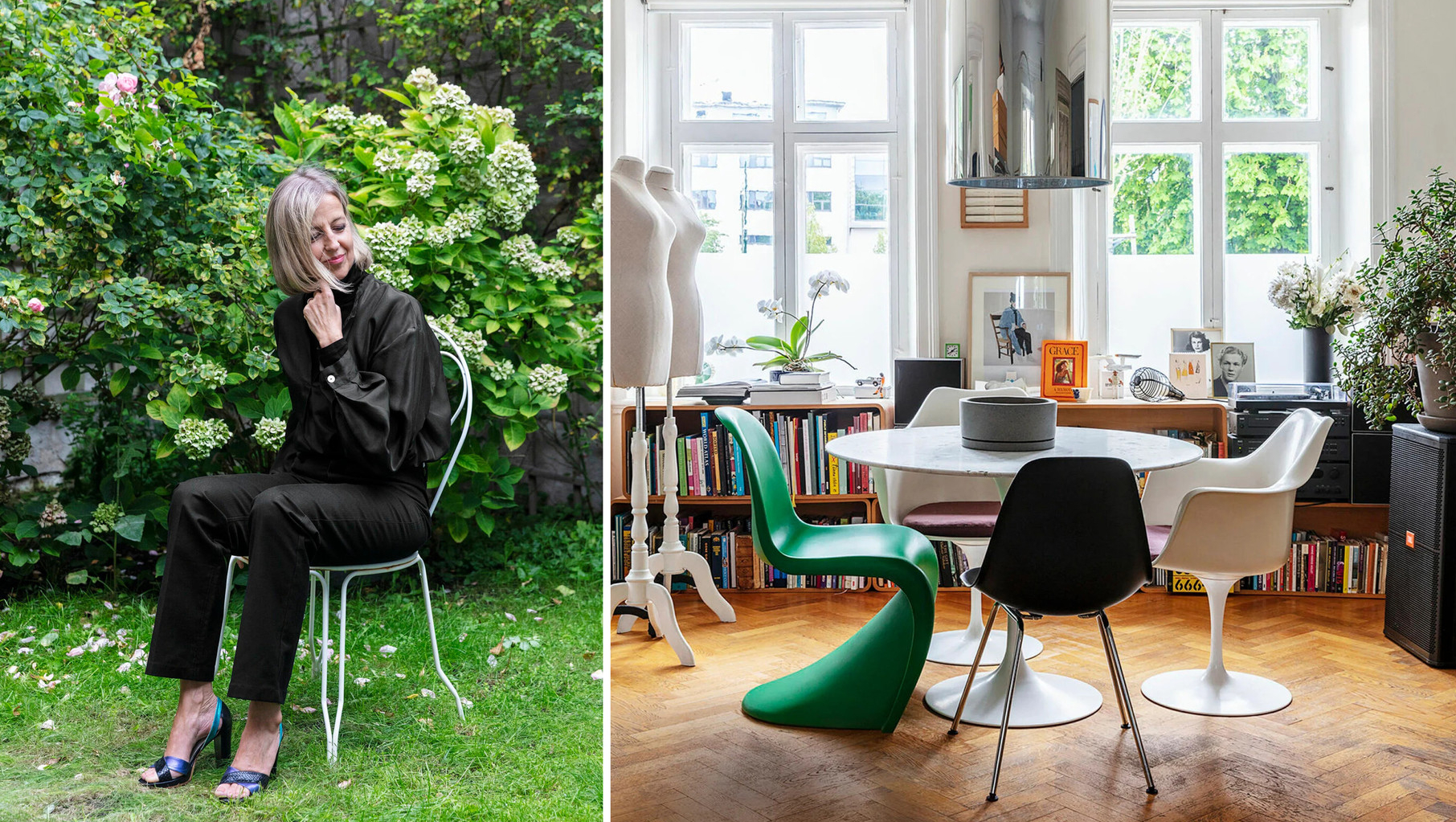 Небольшой светло-голубой дом стоит на набережной Сёдра в самом центре Мальмё. Он был построен в 1862 году, и в нем сохранилось немало оригинальных деталей. В интерьерах много эклектики: классика дизайна середины прошлого века соседствует здесь с винтажными предметами и мебелью, которую придумал Марк. Здесь много искусства, а одну из самых больших комнат дома занимает коллекция одежды Марии (иногда она приглашает сюда постоянных клиентов на закрытые вечеринки, и тогда весь первый этаж дома превращается в шоурум E.Timglas).