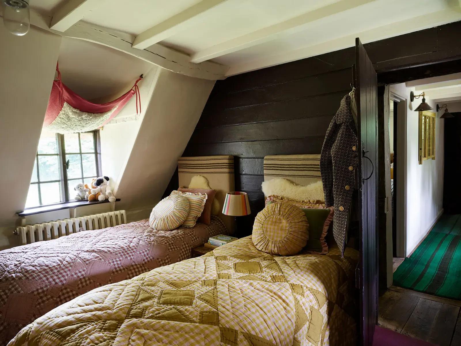 Так за домом появился живописный сад с полевыми цветами, а внутри — винтажная мебель и светильники, создавшие в доме особую атмосферу. Кухню Деллал выкрасила в нежно-розовый цвет — он прекрасно сочетается с мебелью из темного дерева. «У всего есть своя история, даже у кухонных шкафов — они были сделаны из старых школьных парт» — говорит Миллер. Пространство получилось местами эклектичным, но довольно целостным.