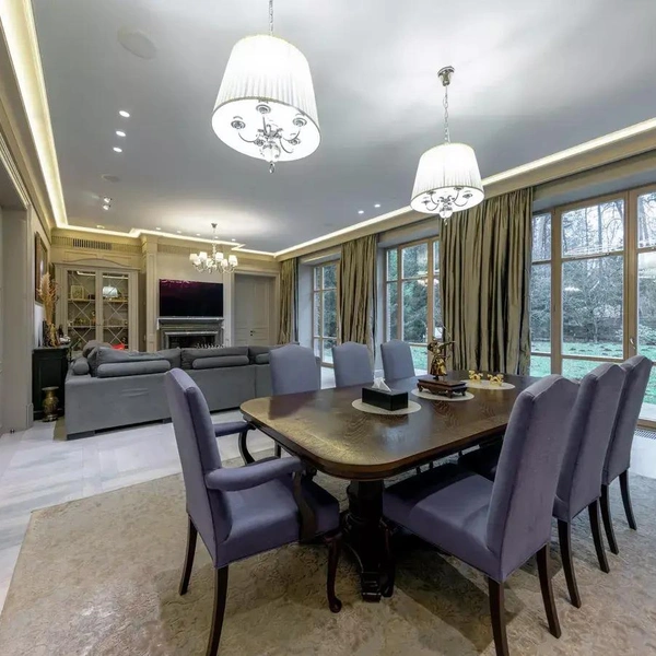 К слову, в этом же закрытом поселке на 22 дома можно найти варианты дешевле, без надбавки за звездное имя владельца. Например, дом в три раза больше размером (1500 кв. м) продается за 690 млн. рублей.
