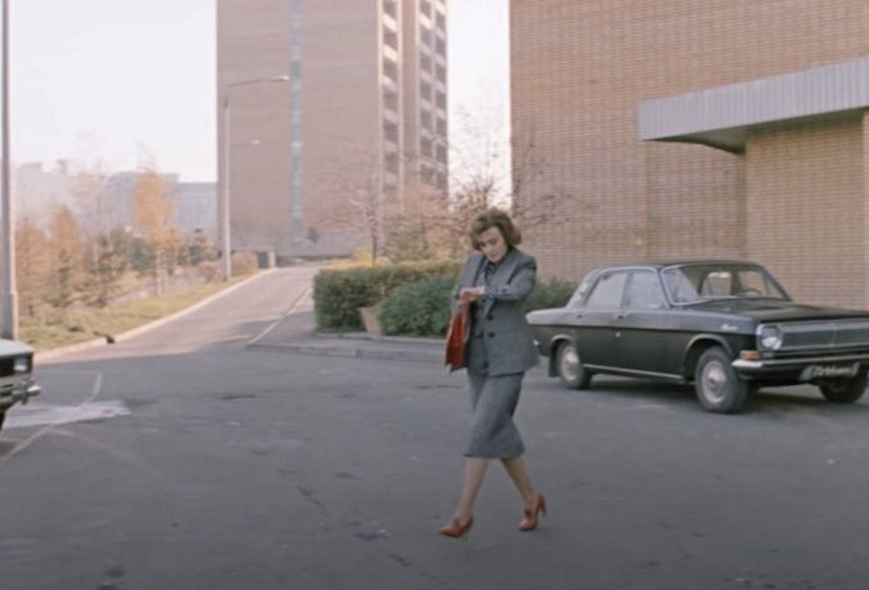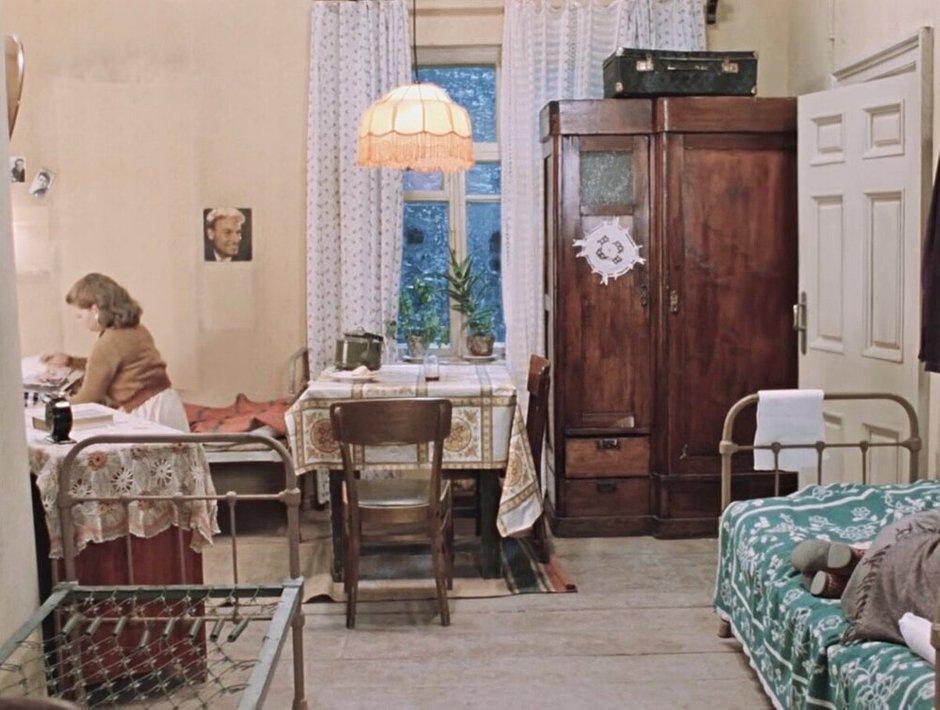 Через интерьеры фильма режиссер Владимир Меньшов показал путь героини Веры Алентовой — от простой работницы завода до директора химкомбината и депутата Моссовета. Вместе с ней мы наблюдаем, каким разным мог быть быт советского человека в зависимости от статуса. История начинается в 1950-х, когда Екатерина Тихомирова делит комнату в общежитии с двумя подругами. Небольшая комната с тремя металлическими кроватями, старый шкаф, желтоватые обои, небольшой квадратный стол и абажур с бахромой, пледы, кружевные салфетки, простые шторы, стертые дощатые полы, бельевая веревка… В общем, без излишеств.