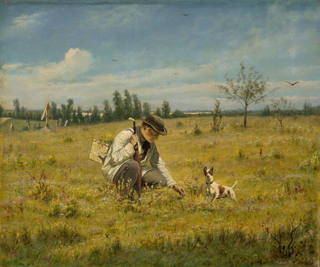Страсть к охоте пронизывает все творчество Перова. Этой теме он посвятил целую серию работ: «Рыболов», «Ботаник», «Голубятник», «Птицелов» и другие. Но самой знаменитой стала картина «Охотники на привале» (1877) — ее более ранняя версия 1871 года хранится в Третьяковской галерее. На полотне изображены три охотника. Слева — увлеченный рассказчик, вероятно, обедневший дворянин. Художник писал его с доктора Д. П. Кувшинникова, заядлого охотника, чья московская квартира позднее стала местом встреч творческой интеллигенции. В центре — скептически настроенный крестьянин, чей прототип, врач В. В. Бессонов, был еще и художником-любителем. Справа — молодой наивный новичок, образ которого Перов создал с Н. М. Нагорнова, в будущем — видного общественного деятеля и родственника Льва Толстого.