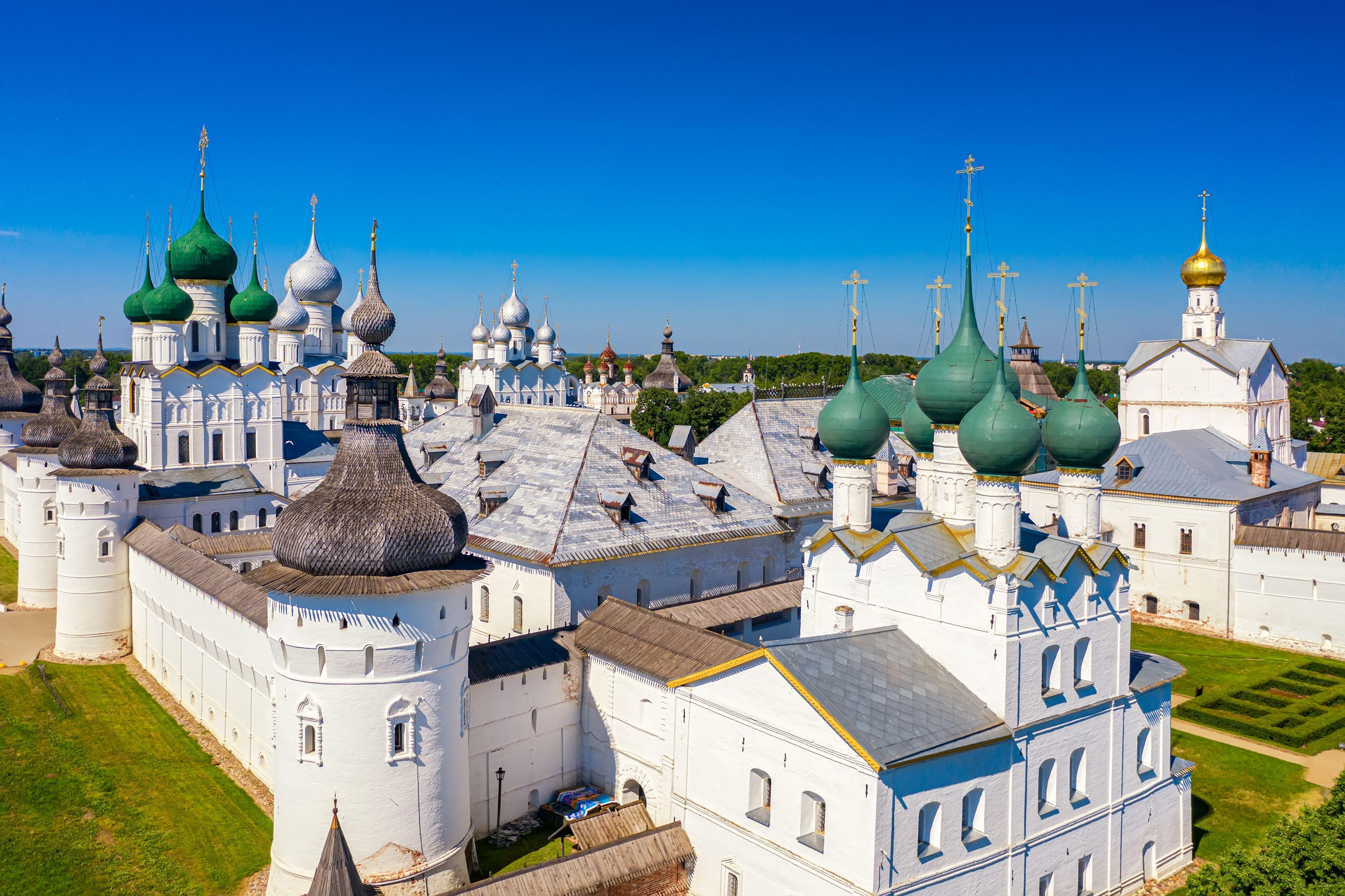Ростовский кремль поражает не оборонительной мощью, а красотой — его белые стены живописно отражаются в водах озера Неро. Внутри кремля расположен музей, где можно увидеть все — от древнерусских икон до авангарда начала XX века, включая знаменитую «Зеленую полосу» Ольги Розановой. Местные говорят, что здесь особое звучание колоколов — мягкое, певучее, «ростовское».