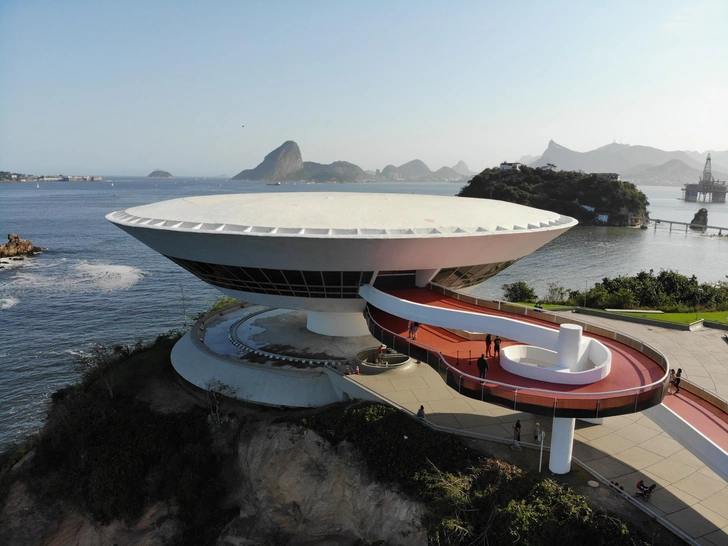 Если вы поклонник Оскара Нимейера, но предпочитаете побережье строгим городским видам Бразилиа, Нитерой — идеальный выбор. По пути от Рио-де-Жанейро, пересекая залив Гуанабара, мы рекомендуем проехать Caminho Niemeyer — шестикилометровый маршрут, включающий ряд выдающихся модернистских работ архитектора. Среди них выделяется Музей современного искусства Нитероя —футуристическое здание, парящее над водой и символизирующее подлинную мечту эпохи космических исследований.