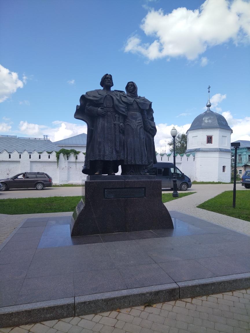 памятник святым Петру и Февронии — символ супружеской любви (впрочем, если вы изучите земную историю отношений пары, она вас немало удивит — ведь изначально князь женился на ней не по любви, а по принуждению — это было платой за исцеление);