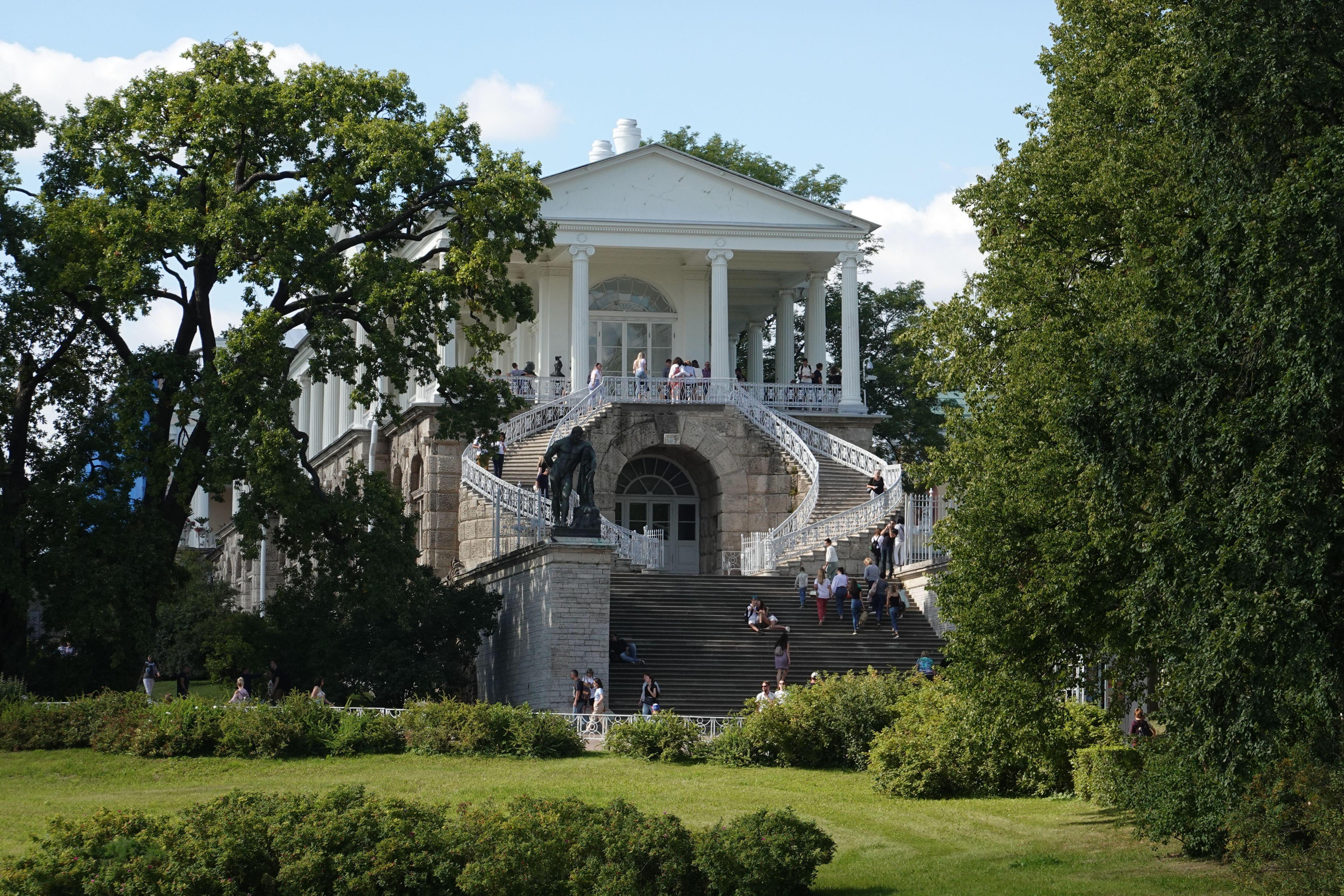 Куда отправиться после такой насыщенной культурной программы? Идеальный вариант — Екатерининский парк. Как вы наверняка догадались, получил он свое название от дворца, построенного при Екатерине I, но во многом его облик сформировала Екатерина II. Именно благодаря ей парк стал столь гармоничным и величественным. Между прудами, оранжереями и аллеями скрываются десятки архитектурных сооружений, но главное место, которое обязан увидеть каждый посетитель, — легкая, воздушная Камеронова галерея.