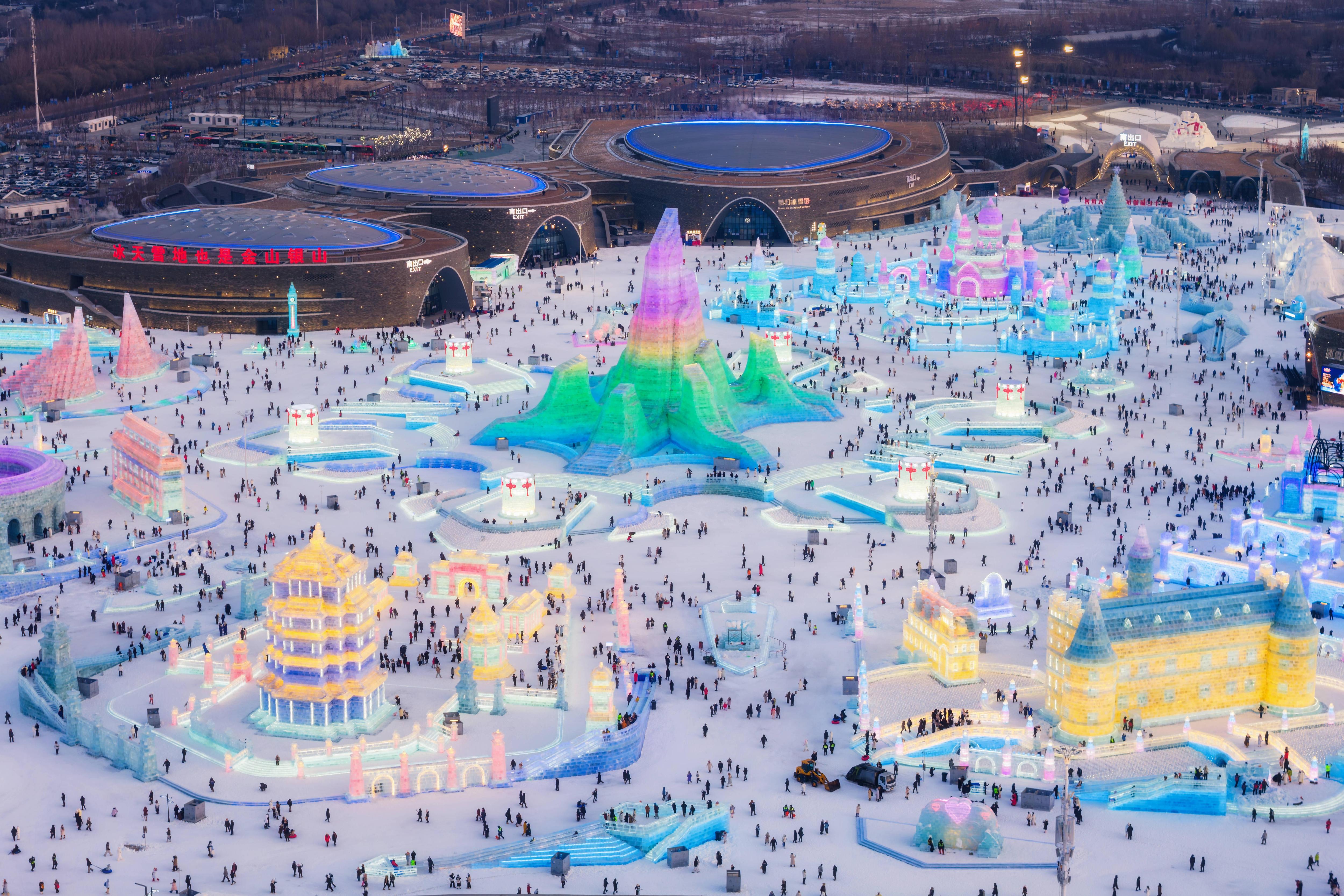 Чтобы увидеть самые масштабные ледяные постройки, стоит отправиться в китайский Харбин. Там с декабря по февраль проходит Международный фестиваль льда и снега. Это, по сути, целый временный город площадью до 800 тысяч квадратных метров.