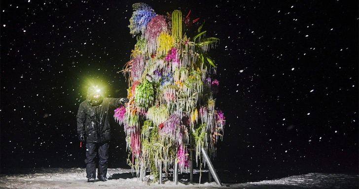 Японский художник Азума Макото использует холод как инструмент для работы с природой. В серии «Замерзшие цветы» он помещает свежие букеты в глыбы прозрачного льда и выставляет их на заснеженном поле.