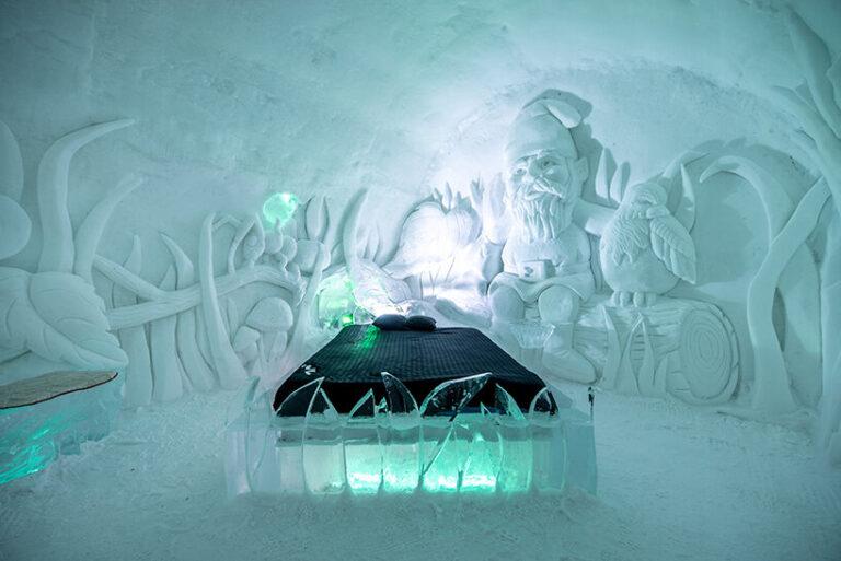 С наступлением зимы из этих блоков и специальной смеси снега со льдом начинают возводить стены, арки и перекрытия. Процесс занимает около полутора месяцев. Затем приглашенные художники украшают каждую комнату резьбой, превращая ее в арт-объект. Особенность в том, что к апрелю-маю отель начинает таять, и все возвращается в природу. Это принцип полного цикла, который стал частью философии проекта.
