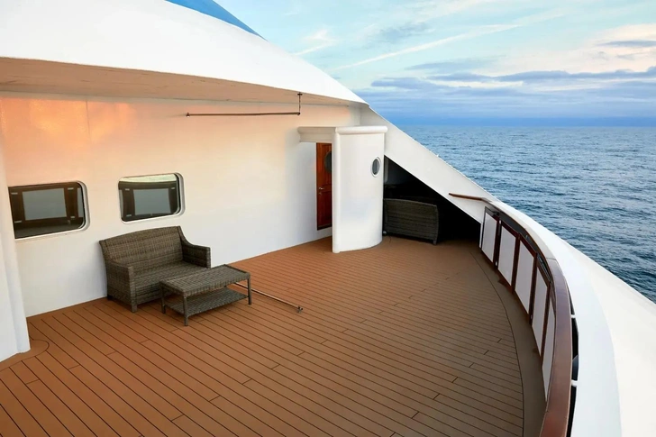 Все это сочетается с современными удобствами. На борту есть и общественные зоны: площадка для йоги на рассвете, зона для демонстрационных боев муай-тай, сцена для представлений и традиционных танцев.
