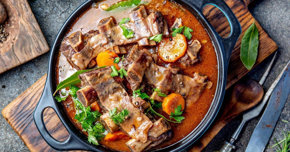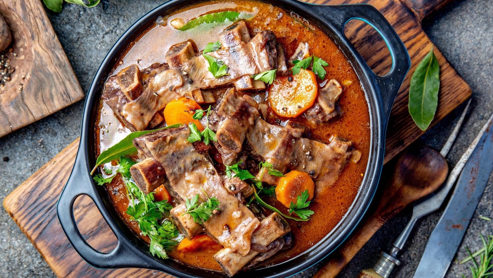 Залейте ребра подливой. Если они не покрываются жидкостью полностью, добавьте немного кипятка.