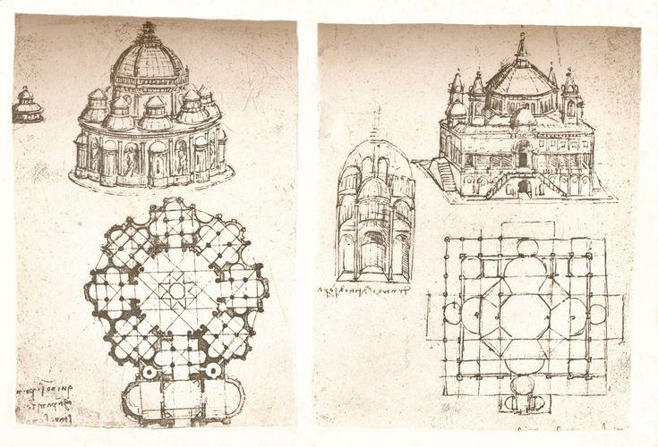 Леонардо Да Винчи. Наброски к проектам купольных центрических храмов.