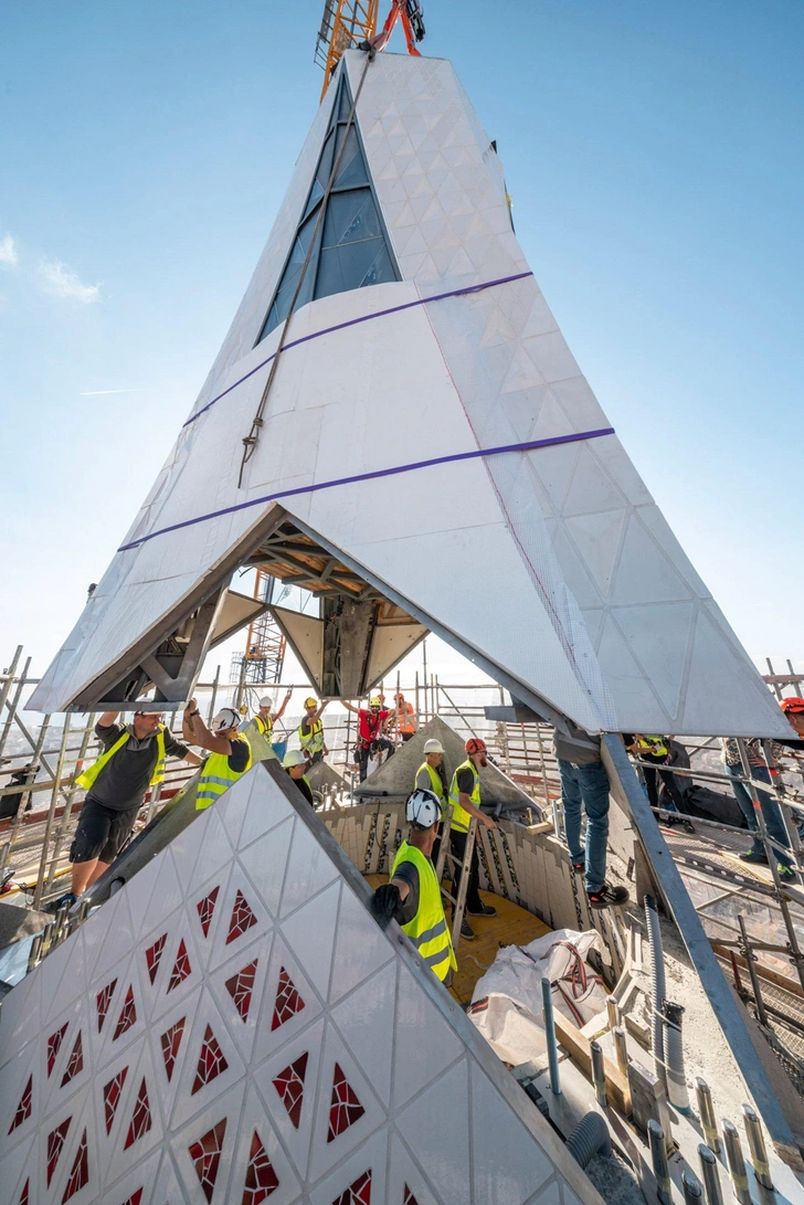 30 октября на центральную башню Иисуса Христа установили новую секцию весом 24 тонны: она сделала Sagrada Família самым высоким храмом в мире (162,91 м). Так храм обогнал по высоте Ульмский собор в Германии — буквально на метр. И это еще не все — в ближайшее время на этом основании установят 17-метровый крест.