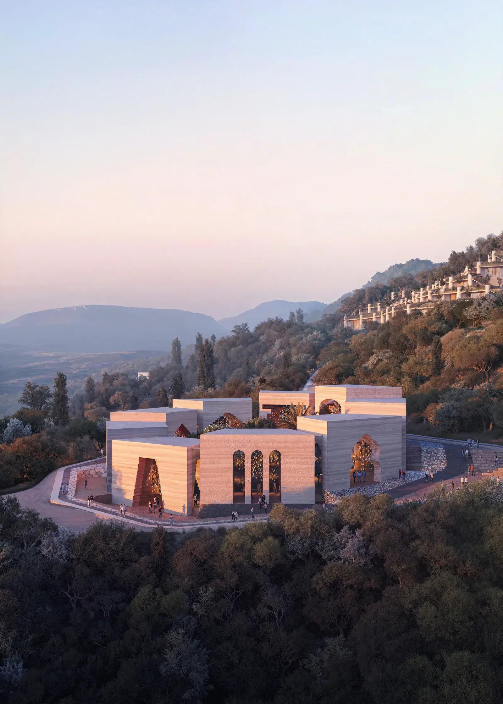 А вот еще один анонс от студии BIG — общественный парк площадью 200 000 кв. м в Албании. Среди тенистых садов и оливковых рощ построят девять кубических павильонов, посвященным разным религиям. По своим ценностям проект чем-то похож на город Телоса: в их основе — объединение, гармония с природой. Архитекторы считают, что это особенно важно в наше неспокойное время. Завершить такой межконфессиональный проект планируют к 2026 году.