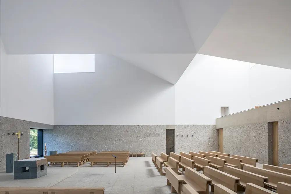 «Самая красивая современная церковь в мире находится в Баварии», — говорили по радио, когда приходская церковь Преподобного Руперта Майера в Поинге получила международную премию Фонда Братата Соли в 2020 году — опередив 112 других проектов из 33 стран. Белая церковь, спроектированная Meck Architekten, воплощает концентрированную тишину.