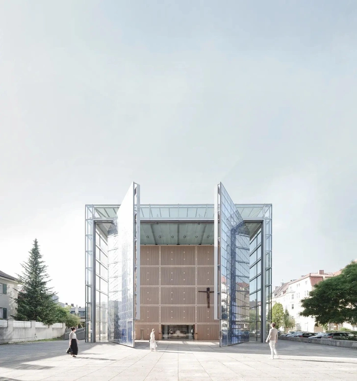 Недавно построенная, но уже ставшая известной, церковь Святого Сердца в Нойхаузене построена архитекторами AllmannWappner. За самыми большими церковными дверями в мире (общей шириной в 21 метр) скрывается деревянный куб с органной галереей. Войдя, посетители оказываются в залитом светом интерьере. Две его оболочки (внешняя, из тонированного синего стекла на стальном каркасе, и внутренняя, из многослойной древесины) блокируют внешний мир, но не свет. От прямых солнечных лучей защищают более 2000 деревянных жалюзи. Над алтарем в залитом светом зале висит занавес от пола до потолка, на который проецируется огромный крест.