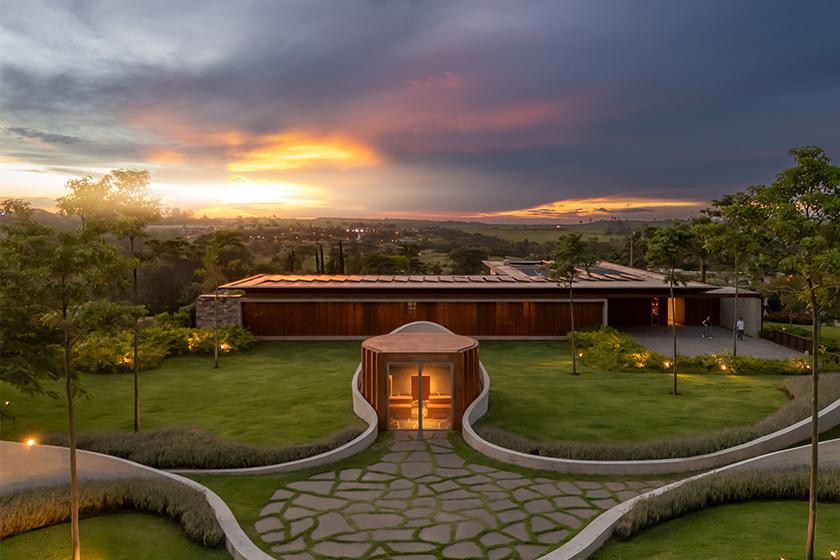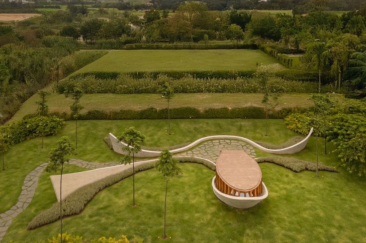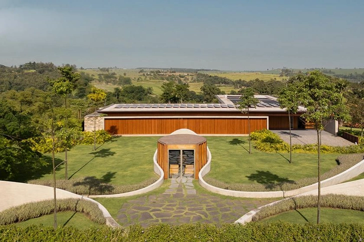 На отдельном участке в 2000 кв. м, оставшемся после строительства основного дома, архитекторы возвели небольшую капеллу. Запрос клиента был простым и глубоким — создать отдельное место для молитвы и размышлений, не встроенное в пространство дома, но духовно связанное с ним.