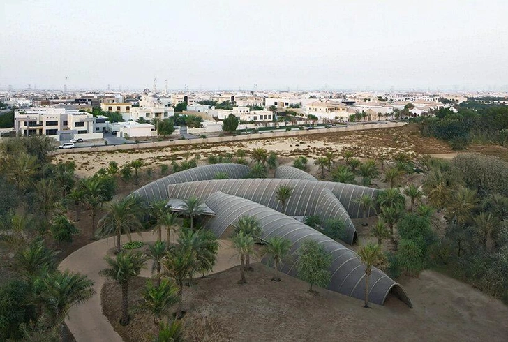 Функциональные зоны — жилые помещения, переходы, открытые и полуоткрытые площадки — связаны друг с другом по диагональным и кольцевым маршрутам. Эта планировочная структура напоминает традиционные приемы адаптации к жаркому климату, где важна последовательность открытых и закрытых, широких и узких пространств, но реализована с помощью современных форм и материалов.