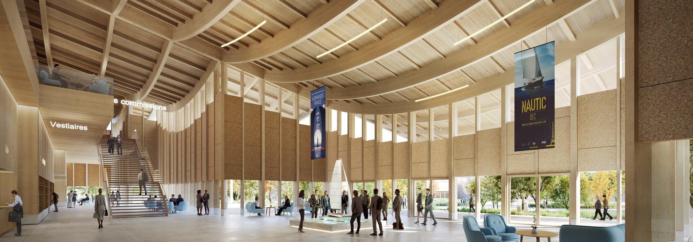 Проектируя здание из дерева и стекла, архитекторы ориентировались на традиционные фахверковые дома Руана. А широкая крыша с солнечными панелями вдохновлена изгибами корабельных парусов.
