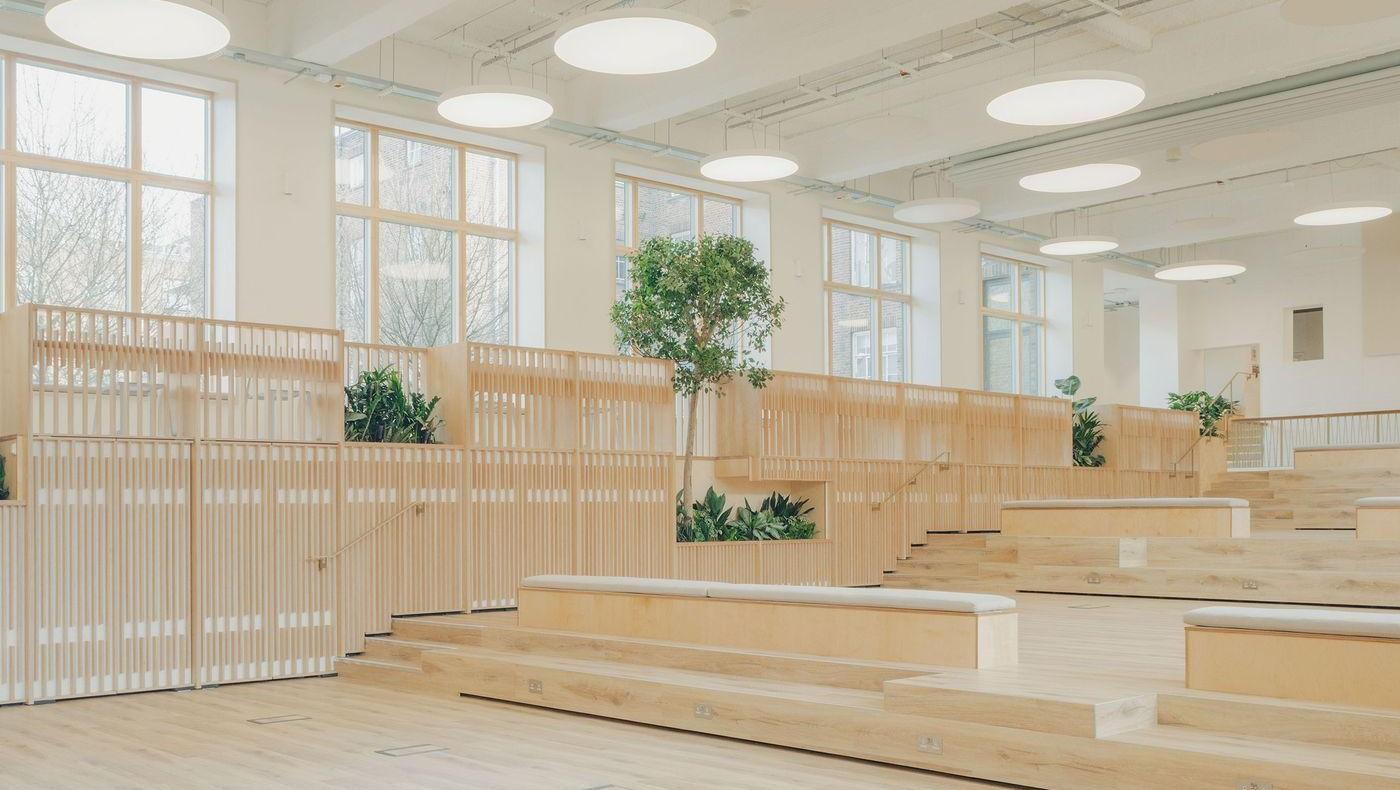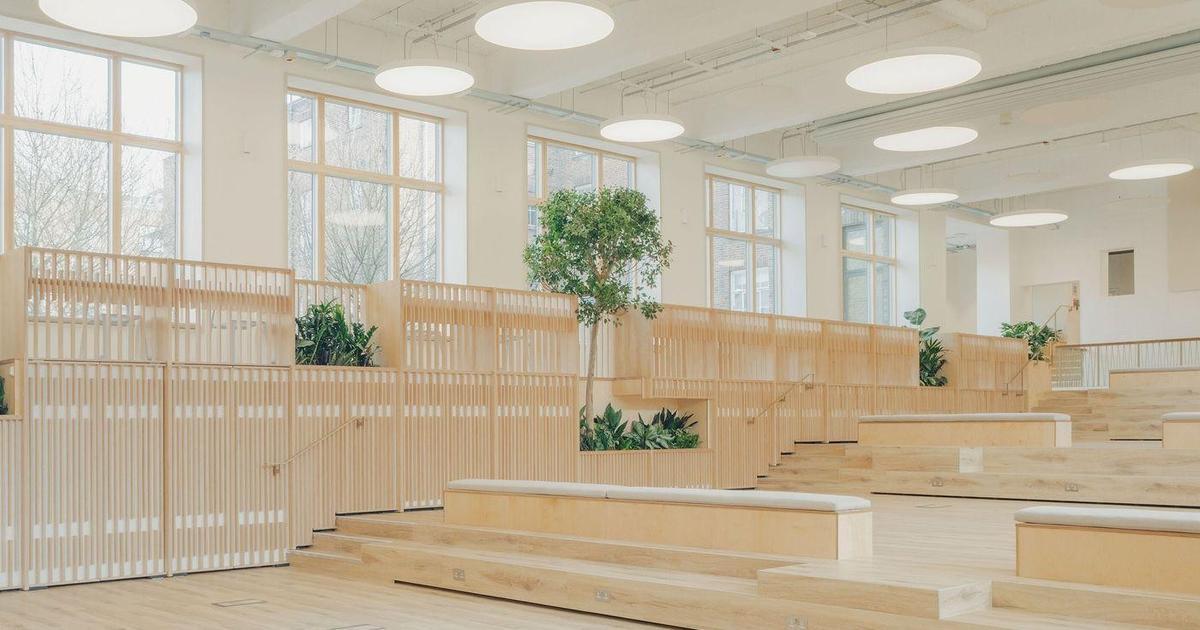 Не менее важна была техническая сторона. Проект оснастили энергоэффективными системами, включая тепловые насосы и светодиодное освещение. Для отделки использовали переработанные акустические панели и краски с низким содержанием летучих органических соединений, что свело к минимуму экологический след реконструкции.