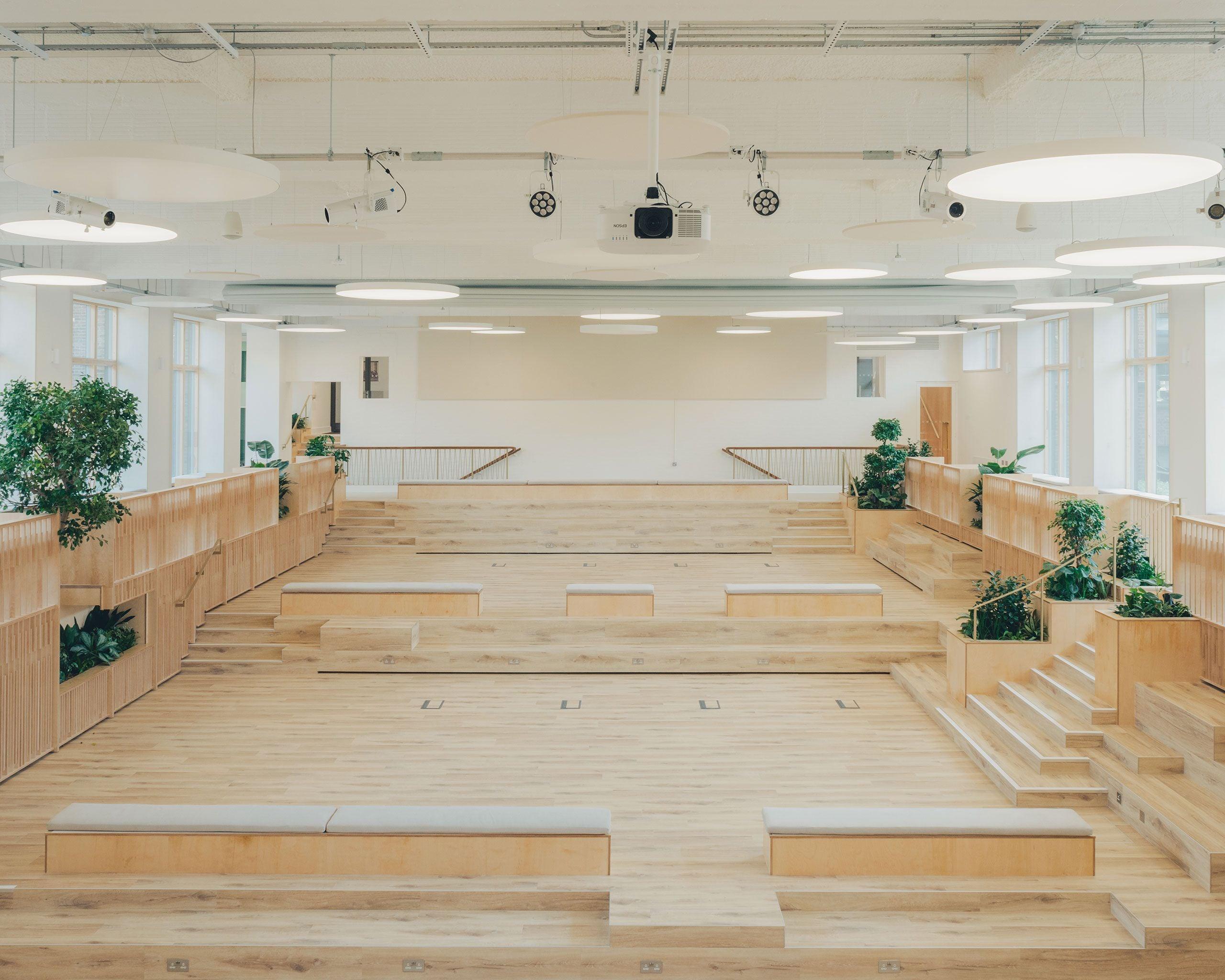 Studio DERA подошла к проекту как к диалогу. Вместе с преподавателями, техническим персоналом и студентами архитекторы разработали программу, разделив бывшую чашу на пять различных зон. Это позволило адаптировать пространство под разные форматы занятий: от лекций и собраний до групповых работ и индивидуальных проектов.