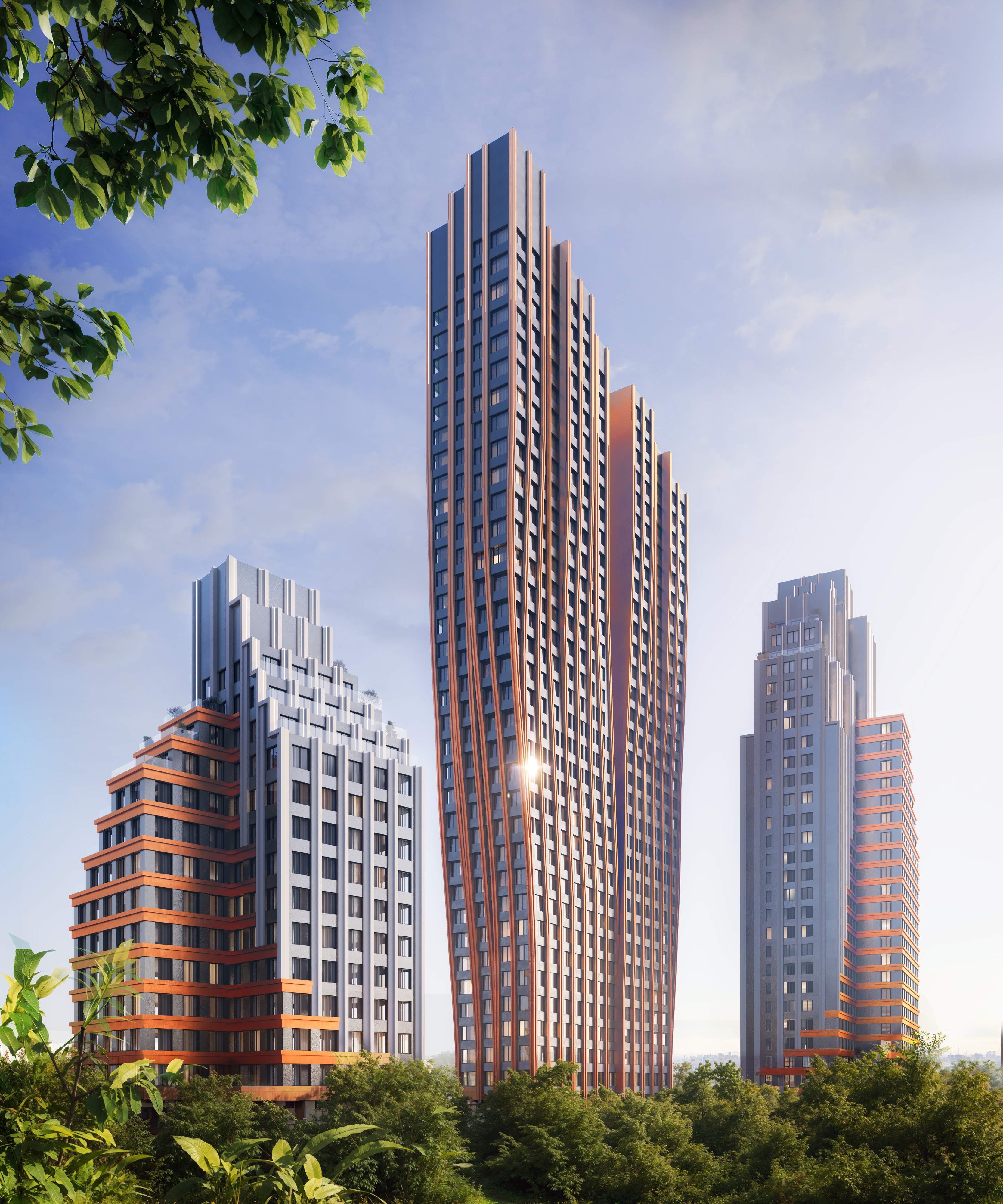 Геометрия зданий влияет не только на внешний вид, но и на функциональность: продуманная форма корпусов позволяет максимизировать количество видовых квартир, обеспечить естественное освещение и создать комфортную приватность для жильцов.