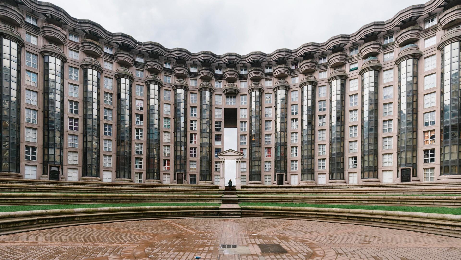 Комплекс строился как социальное жилье и должен был стать частью нового города Марн-ла-Валле (идея строительства девяти новых городов, одним из которых должен был стать Марн, активно продвигалась во Франции с середины 1960-х годов). Первоначально публика с восторгом приняла монументальную псевдоклассическую архитектуру Les Espaces d'Abraxas: комплекс хватили за оригинальность и научно-фантастический вид. Особенно его полюбили кинорежиссеры, неоднократно снимавшие на этой необычной локации свои шедевры. Вы могли видеть это место в фильме «Убить рефери» (1984) Жан-Пьера Моки, в культовой «Бразилии» (1985) Терри Гиллиама и, конечно, в четвертой части киносаги «Голодные игры» (2015) — для этого стены зданий были очищены от граффити, а некоторые жители даже приняли участие в съемках массовых сцен.