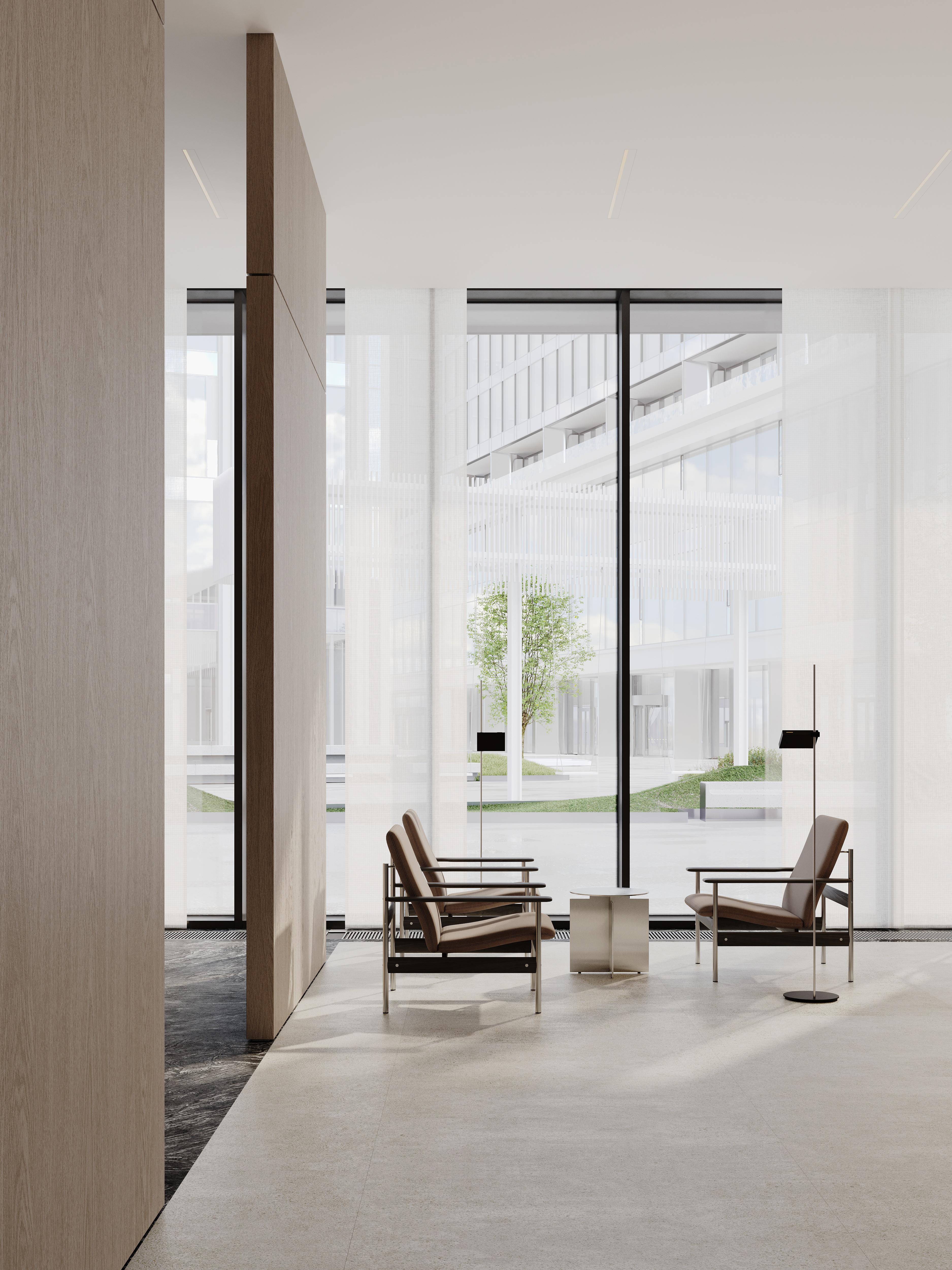 Сонастройка лобби и человека происходит через небольшие, но функциональные решения, не бросающиеся в глаза, пока не начнешь активно пользоваться пространством. Свободные, открытые зоны и минимализм в предметах формируют чувство легкости, обеспечивая тонкий баланс между эстетикой и практической пользой. Каждый элемент не только эстетически выверен, но и выполняет конкретную функцию — ничего лишнего, только то, что действительно повышает удобство.