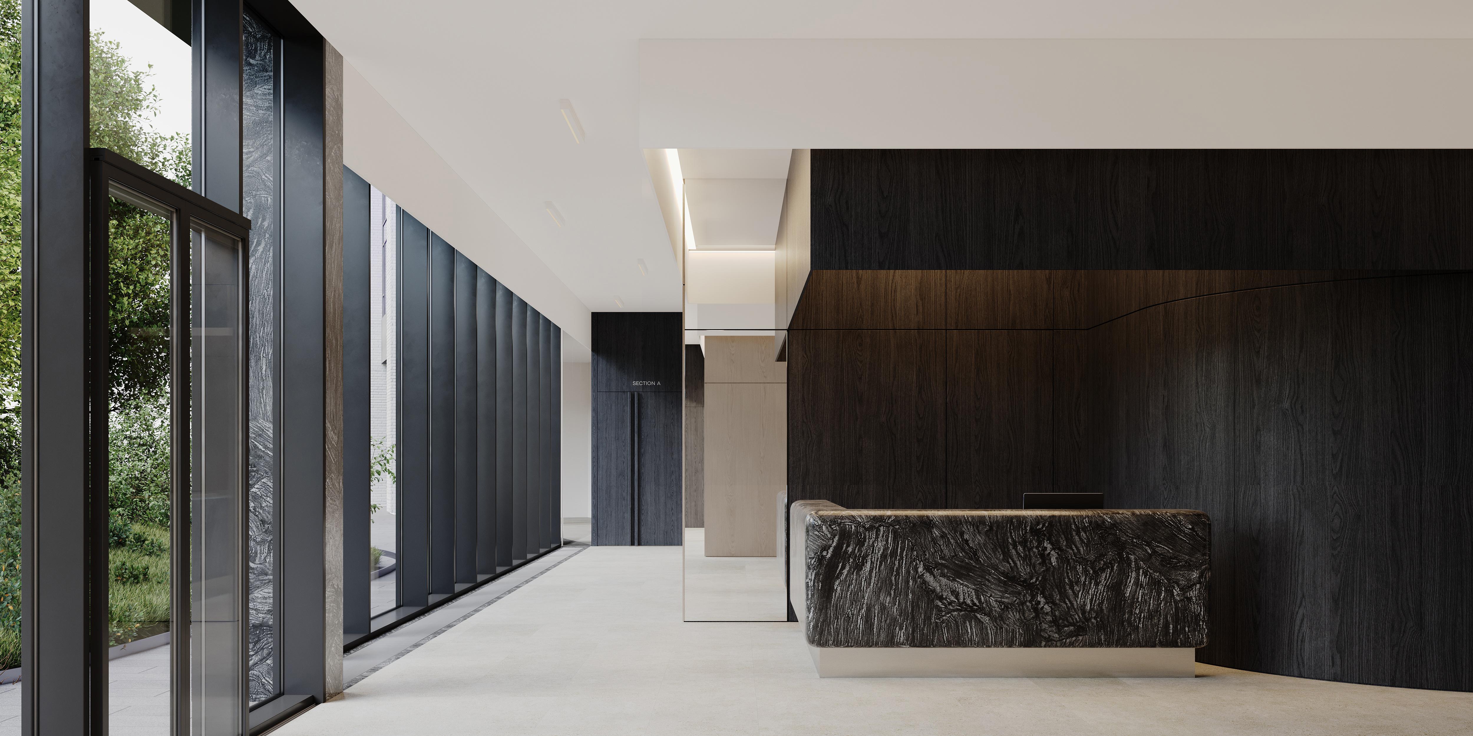 Лобби — это пространство между домом и городом, связующее звено между частным и общественным. Одна из его ключевых задач — органично рифмоваться и с архитектурой здания, и с внешним окружением. Проект расположен в престижном и одном из самых зеленых районов на Юго-Западе Москвы — с насыщенной деловой и жилой средой, где сочетаются статус, комфорт и динамика развития. Сегодня здесь активно формируется новая застройка, ориентированная на жителей с активным ритмом жизни и продуманным отношением к пространству. Именно для этой аудитории создавался функционал и общая концепция гранд-лобби.