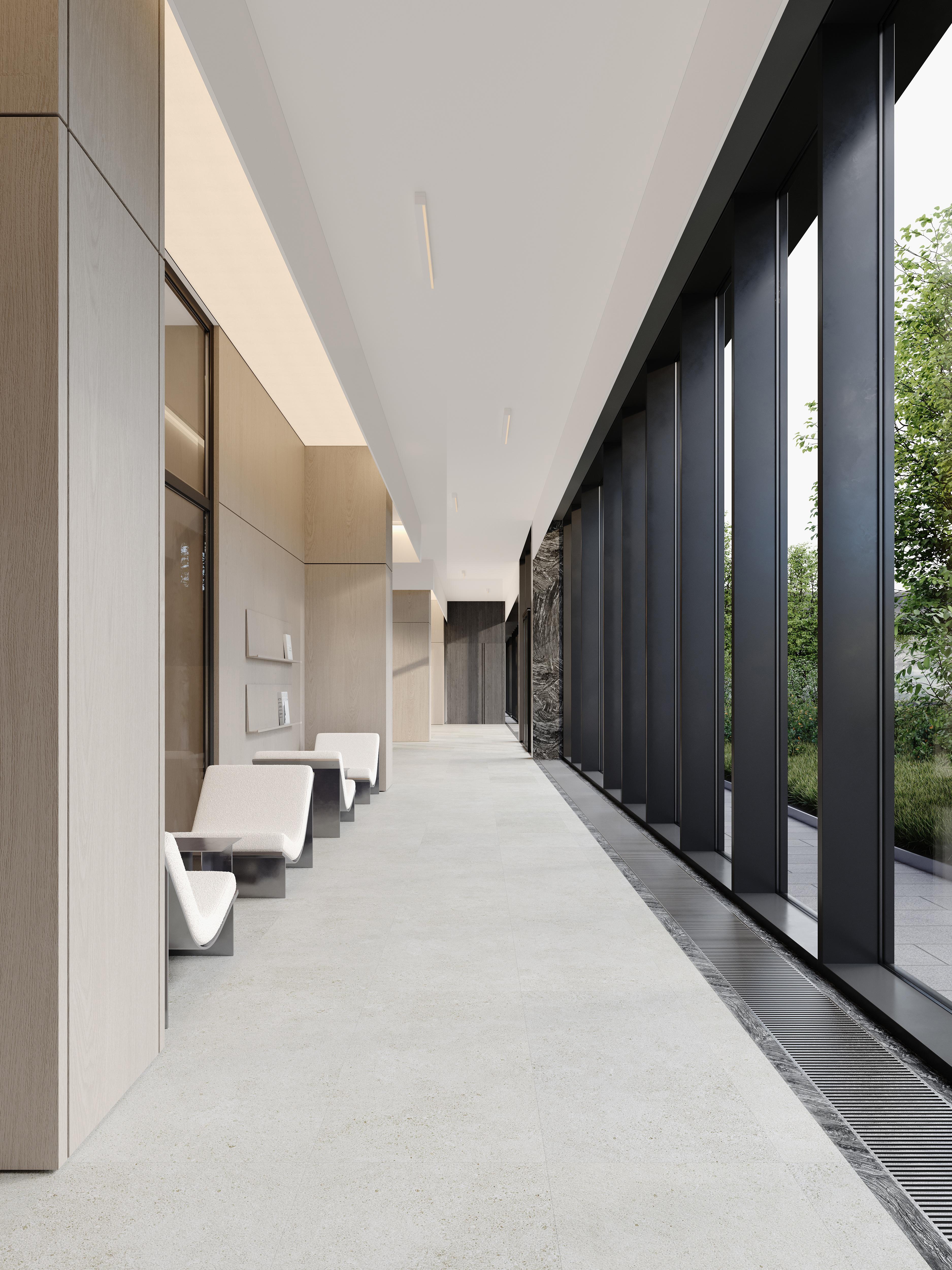 «В целом, если говорить об общих трендах дизайна общественных пространств, в ближайшие годы будут востребованы нетривиальные материалы — в основном натурального происхождения. Но не только. Например, на полу гранд-лобби Stone Grain мы использовали практичный и эстетичный керамогранит, где рисунок стилизован под итальянский ракушечник».