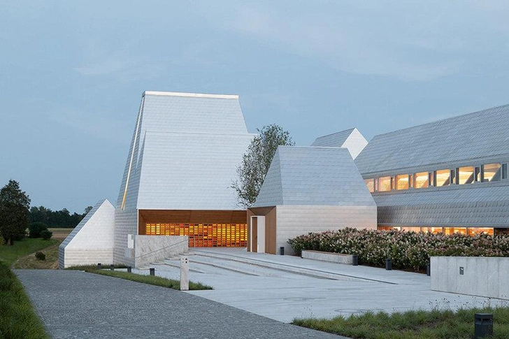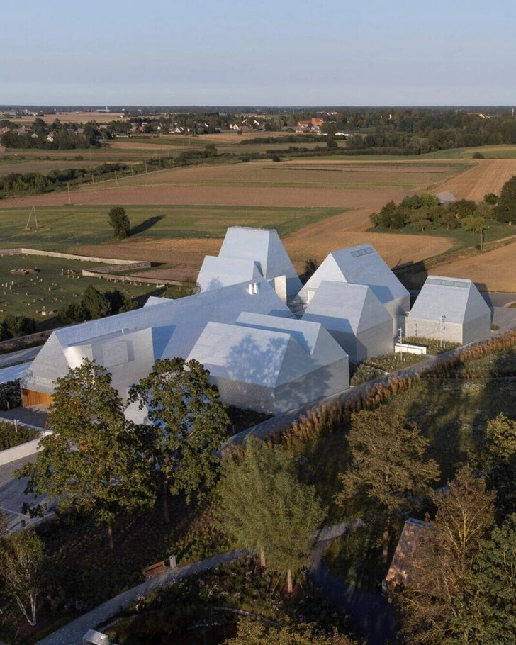В финском бюро Lahdelma & Mahlamäki Architects решили не восстанавливать старые постройки. Вместо этого архитекторы создали группу абстрактных объемов с покатыми крышами. Каждый примерно соответствует масштабу одного жилого дома. Вместе они образуют подобие деревни — компактное поселение, которое через пропорции и близость домов напоминает о штетле (небольшом поселении полугородского типа).
