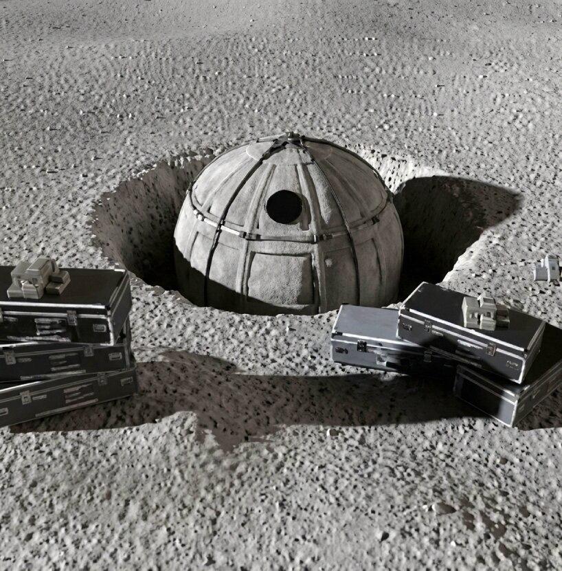 Команда GRU Space заявляет, что в более поздних версиях отеля также будет использоваться лунный грунт, называемый реголитом, для строительства прочных внешних стен. По словам команды, машины будут смешивать лунную пыль со связующими жидкостями, привезенными с Земли, для создания строительного материала, похожего на камень.