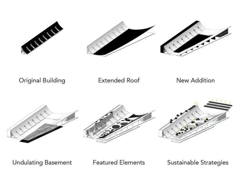 Проект изначально задуман как экологичный. Самое главное — архитекторы сохраняют основное здание, а это уже большая экономия ресурсов по сравнению со сносом и новым строительством. Новая изогнутая крыша и открытые дворы спроектированы так, чтобы максимально использовать естественный свет и ветер с моря для освещения и вентиляции, сокращая потребность в искусственных системах.