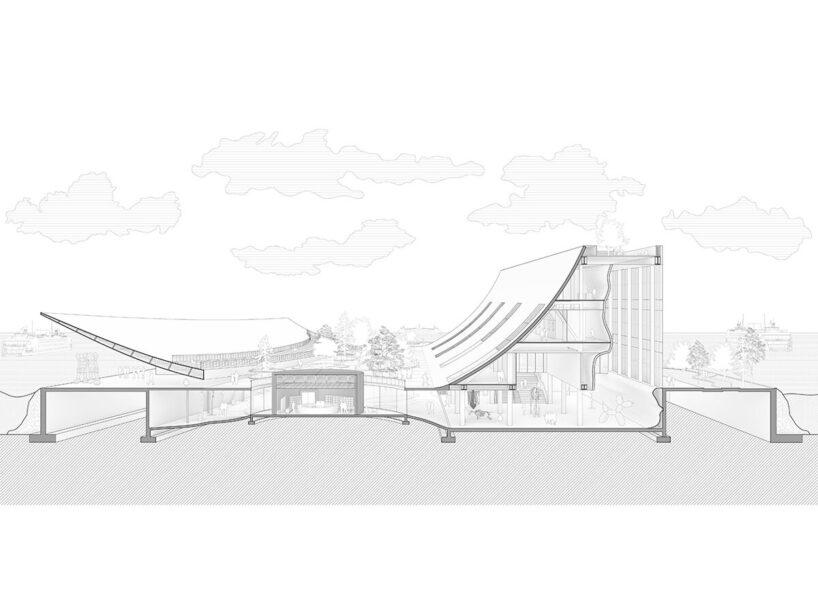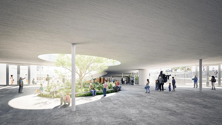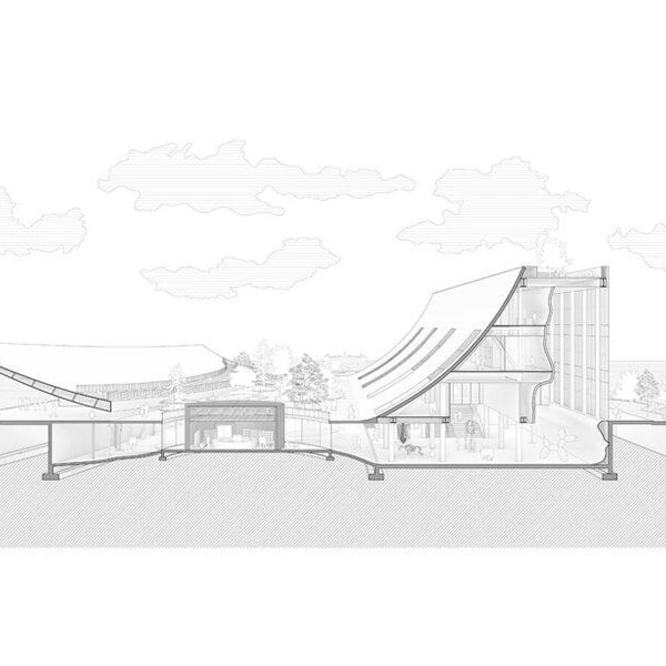 Это превратит здание из изолированного учреждения в часть повседневной городской среды. Даже когда выставки закрыты, пространство под знаменитой волнообразной крышей останется доступным для всех — здесь можно будет укрыться от непогоды, назначить встречу или просто посидеть, глядя на гавань.