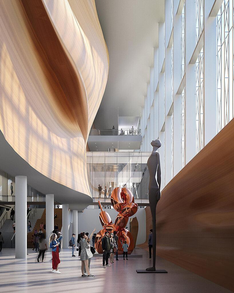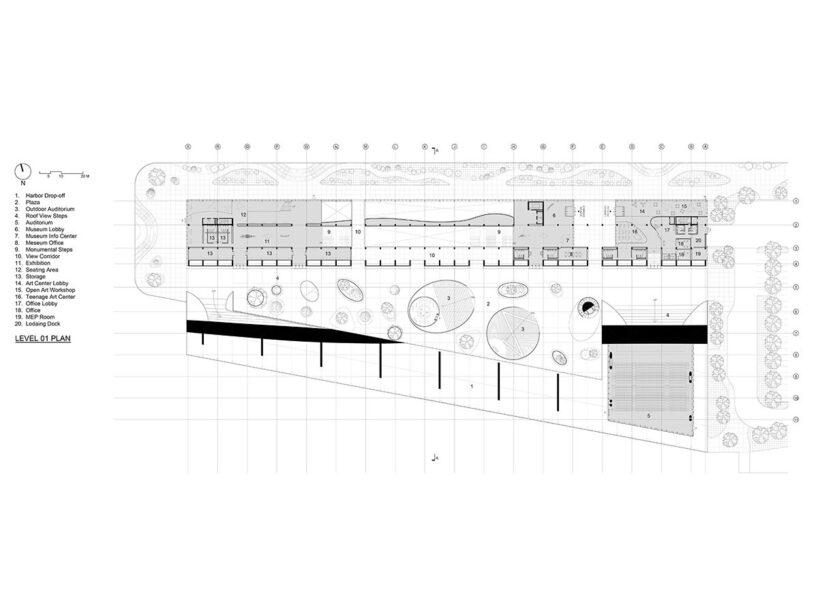 Основная мысль проекта — сделать музей максимально открытым для города. Архитекторы буквально хотят «прошить» его пешеходными маршрутами. То есть, прогуливаясь по набережной, люди смогут свободно проходить через внутренний двор музея и под длинными крытыми галереями.