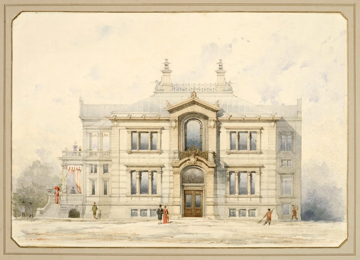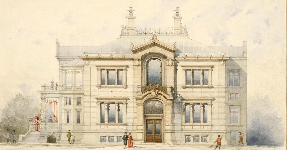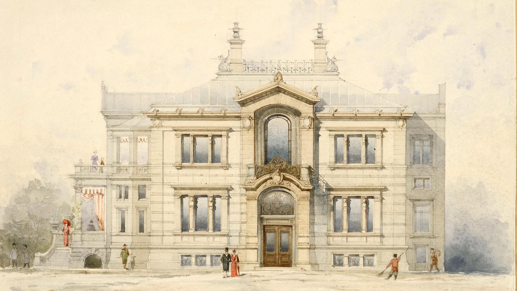 Фасад жилого дома А. П. Мельниковой на Донской улице в Москве. 1903 г. (?) Из собрания Музея архитектуры им. А. В. Щусева.