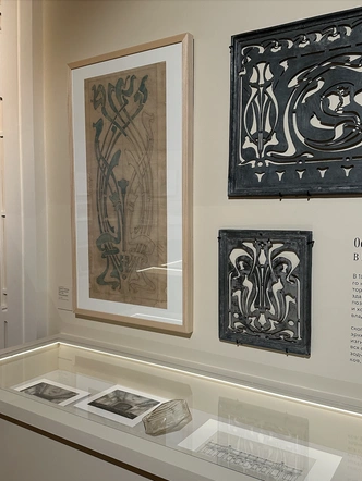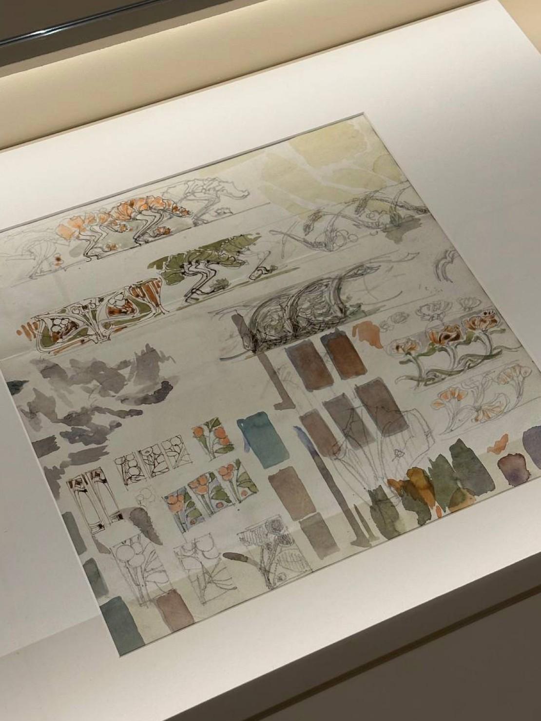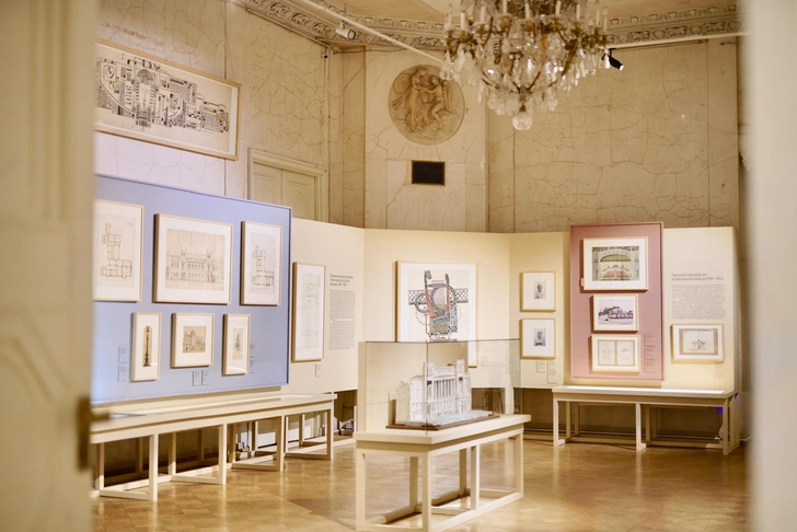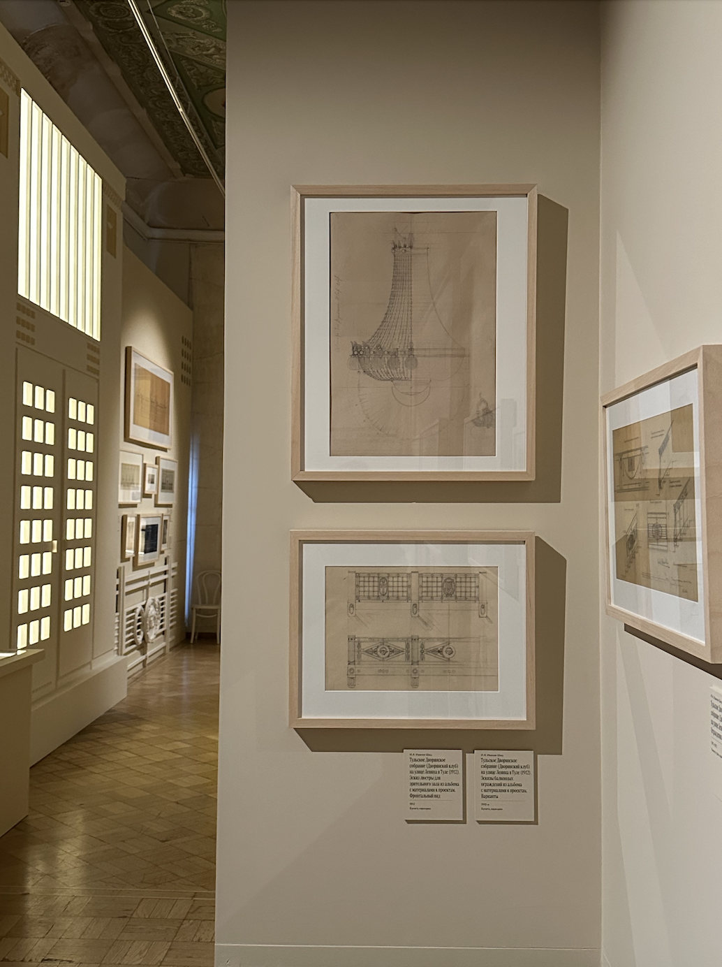 Как и на любой архитектурной выставке, здесь вы увидите много планов и эскизов. Но не только их: обратите внимание на неожиданные (и трогательные) детали — иллюстрации к дореволюционному журналу «Детский отдых», эскизы ювелирных украшений, наброски с прекрасными растительными орнаментами в стиле модерн и потрясающие эскизы интерьеров. Все это создает эффект погружения — мы будто мысленно находимся в его мастерской.