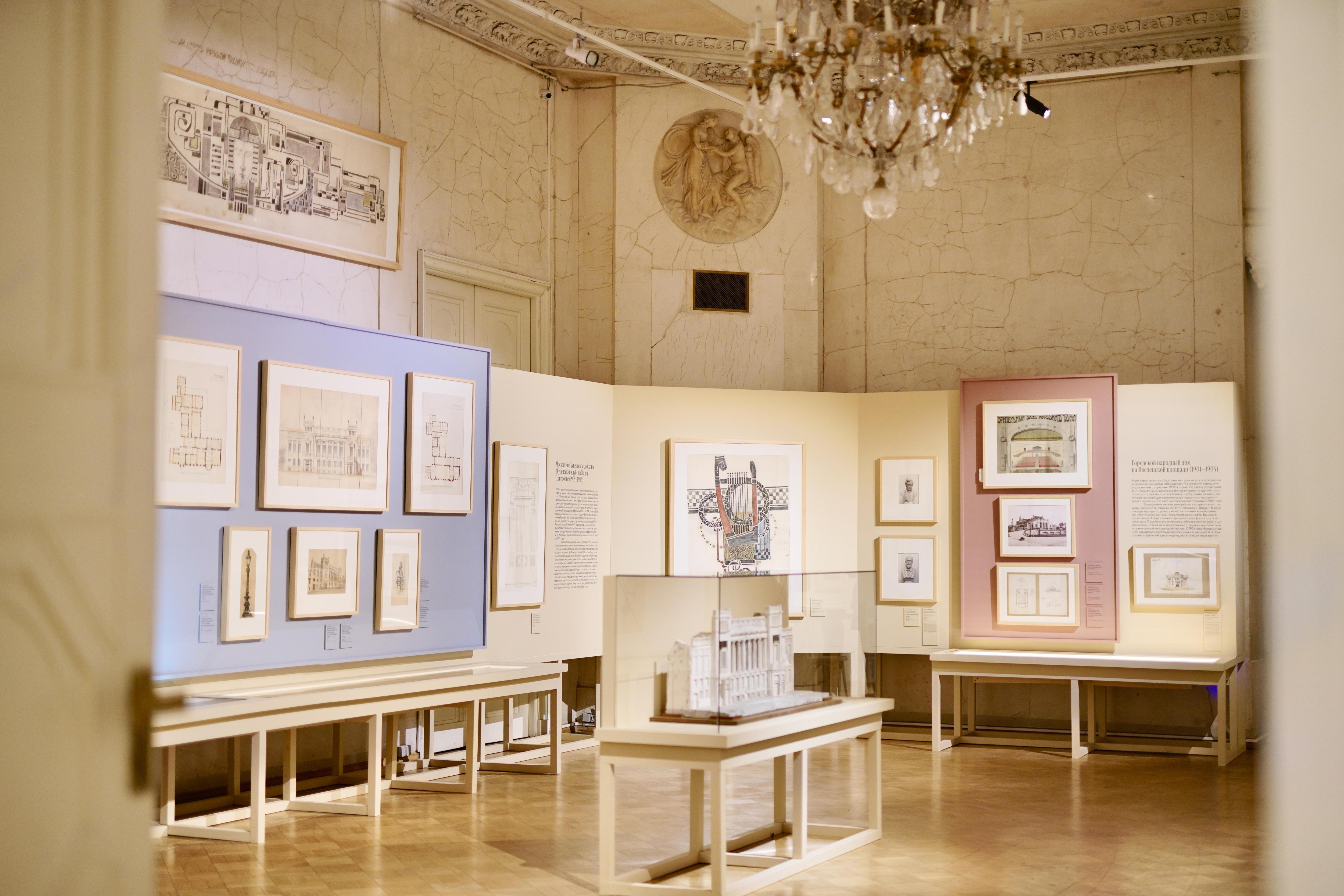 Из зала в зал (а разделов всего семь) видна постепенная смена стилистического курса — от модерна и неоклассицизма до конструктивизма, причем в каждом проекте читается почерк автора. Ближе к концу вы увидите один из вариантов проекта клуба профсоюза металлистов в Подольске. Присмотритесь — в нем можно заметить переосмысленные мотивы дореволюционного творчества архитектора.