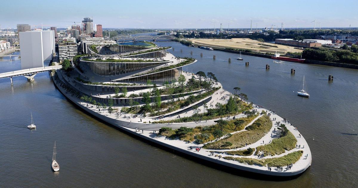 Ландшафтная студия BIG разработала окружающий парк, форма которого вдохновлена «движением воды». Террасы, дюны и сады не только создадут эстетический эффект, но и должны будут выполнять практическую функцию управления ливневыми стоками.