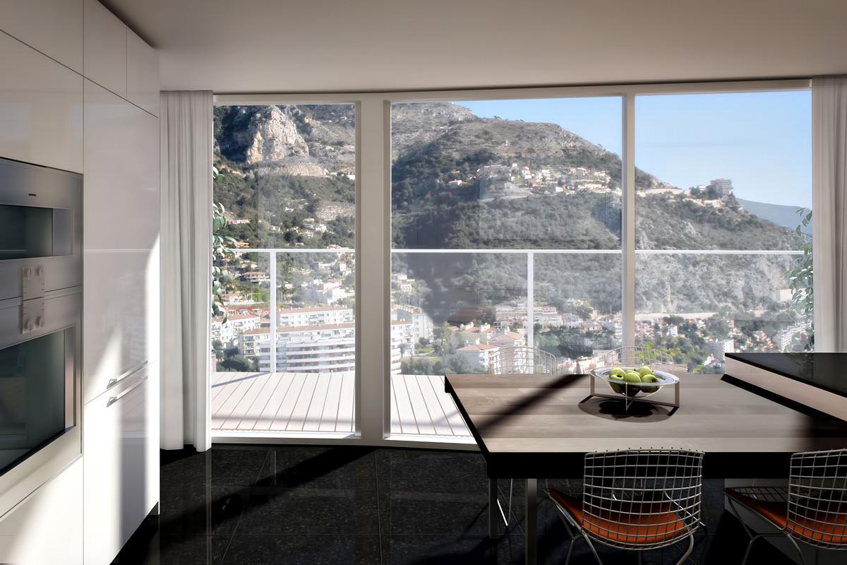 Площадь резиденции — 3300 кв. м. Планировка как у многоэтажной виллы, но поднятой на высоту. Сам небоскреб Odéon, построенный к 2015 году, стал шедевром инженерного искусства и образцом роскошного дизайна. Целью застройщика — группы компаний Marzocco Group — изначально было создание самого высокого и престижного здания в Монако. Руководил проектом известный архитектор Александре Джиральди, интерьерами же занимался легендарный дизайнер Альберто Пинто и сотрудники его бюро.