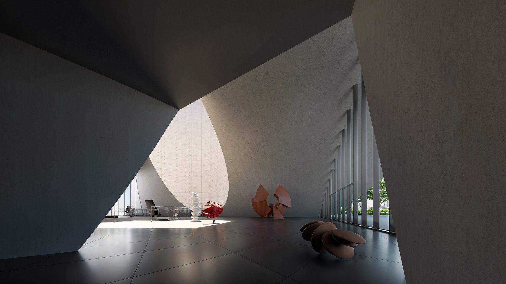 Галерейные помещения расположатся на первом и втором этажах. Освещение этих этажей обеспечит большой круглый световой люк. На верхнем этаже с панорамным остеклением будет открыт VIP-лаунж и ресторан с открытой терассой. Также в музее предусмотрены библиотека и учебные комнаты.