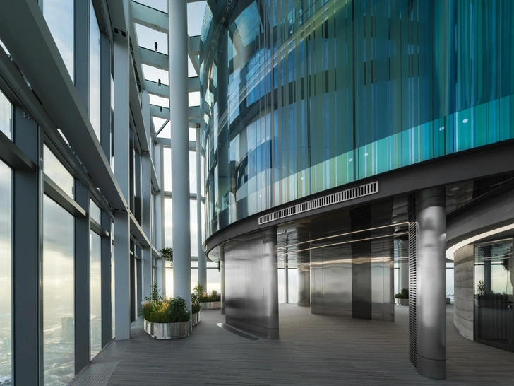 Панорамное остекление от первого до третьего уровня создало иллюзию парящего над городом пространства, открыв для резиденов захватывающие виды на Кремль, Садовое кольцо, Арбат, Поклонную гору, Воробьевы горы, МГУ и Москву-реку с высоты более 360 метров.