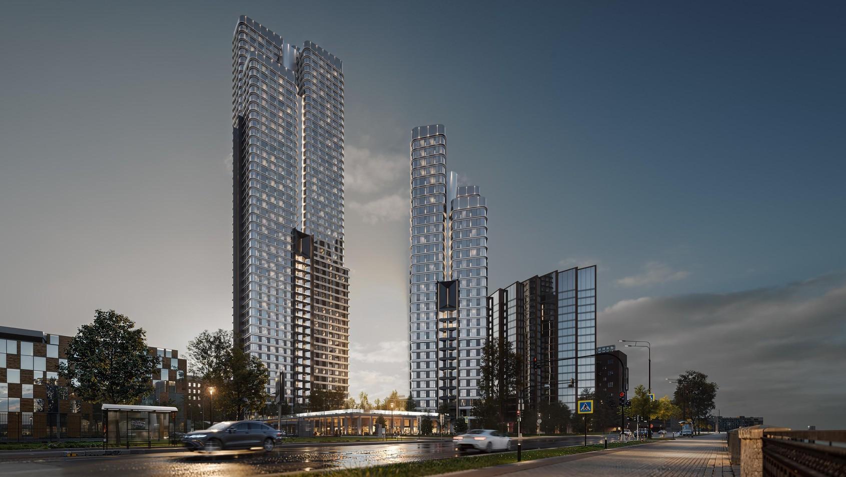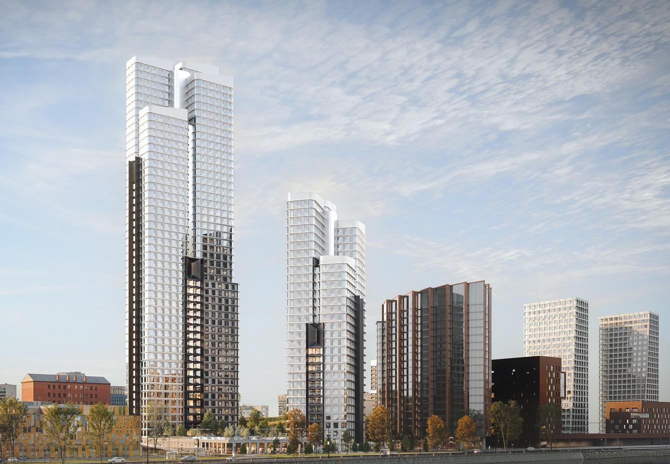 Всего в жилом комплексе предусмотрено около 800 квартир в панорамном остеклении с разноформатными планировочными решениями, в том числе варианты с террасами и двухуровневые пентхаусы в каждой из башен. На нижних этажах расположатся магазины, кафе, фитнес-студия и другие сервисные пространства. Старт строительства запланирован на 2026 год.