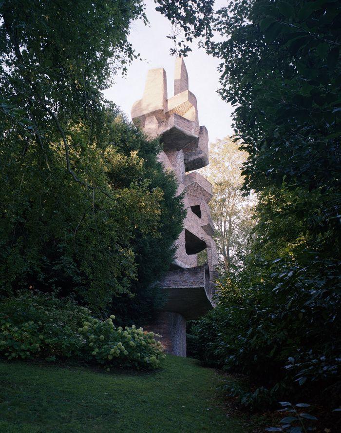 Следующим этапом этого исследования стала «Башня», сохранившаяся в саду до наших дней. При ее постройке Блок использовал аналогичные конструктивные принципы, но обратился к теме вертикали. Сооружение высотой более 25 метров представляет собой сложную систему лестниц и переходов, не ведущих к конкретной цели.
