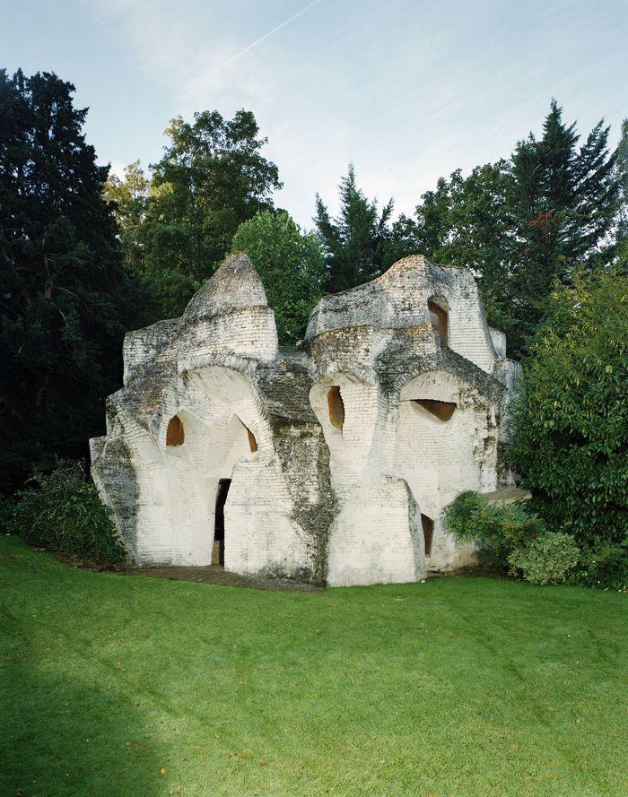 Первой значительной работой в саду стала «Обитаемая скульптура № 1», выполненная из гипса. Однако этот материал оказался недолговечным, и сооружение разрушилось из-за непогоды. На его месте архитектор поставил «Обитаемую скульптуру № 2», впоследствии использованную как декорация в фильме Уильяма Кляйна «Кто вы, Полли Магу?» (1966).