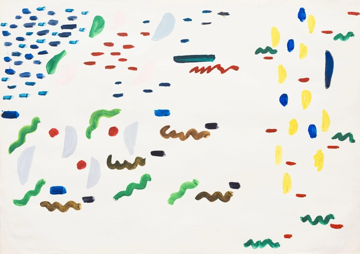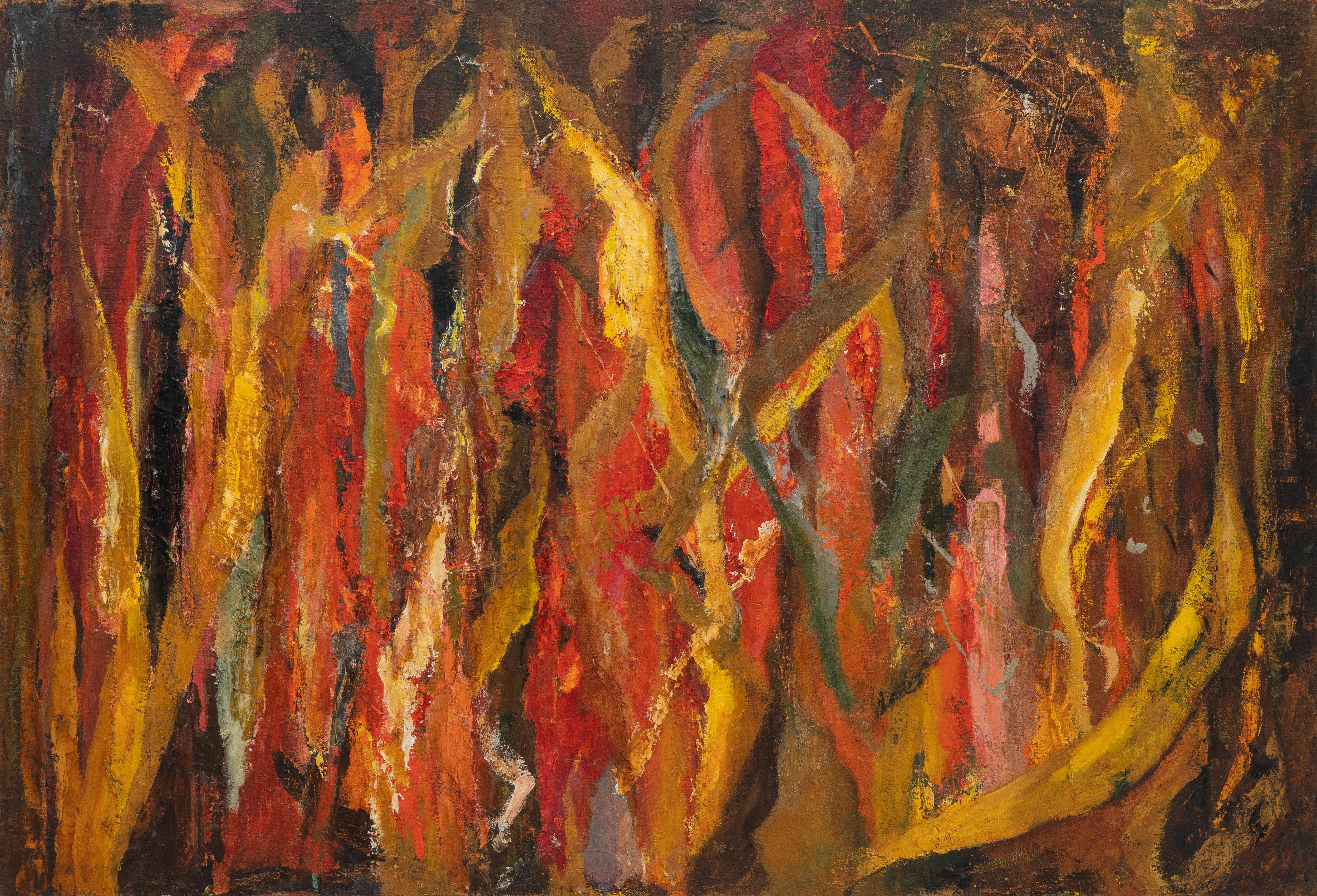 Лидия Мастеркова. «Композиция на красно-желтом фоне», 1960. Холст, масло. Коллекция Антона Козлова